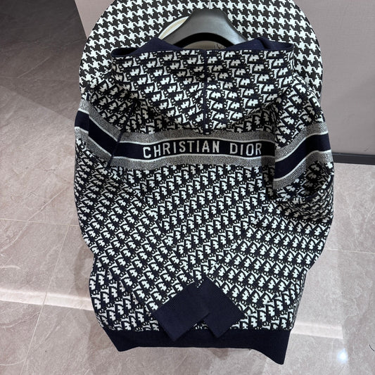 체인2호 /디올 양면에 알파벳 자카드 융합 디자인 울 혼방 지퍼 카디건