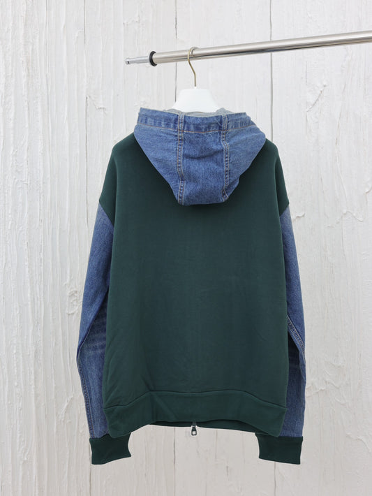 체인2호 /루이 가을 겨울 신상 잉크 그린 접합 데님 소매 지퍼 후드 외투