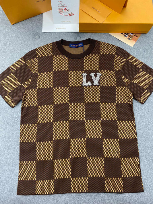 • GTR /  루이비통 니트 반팔 , 24SS checkerboard 울 레터 자카드 반소매