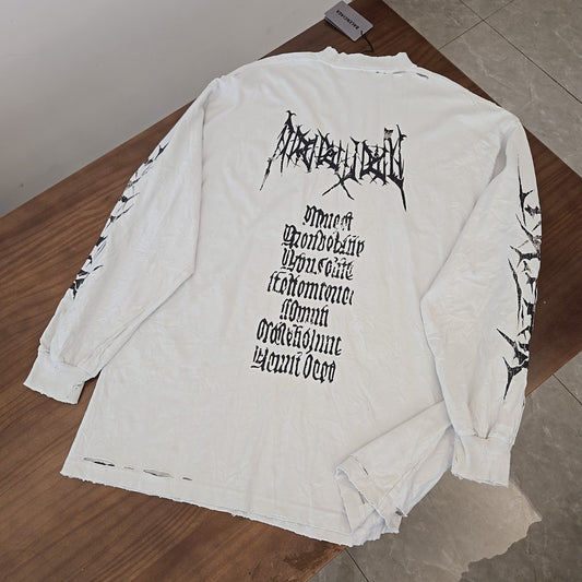 GTR/발렌시아가 남성 화염 산스크리트 알파벳 셔츠