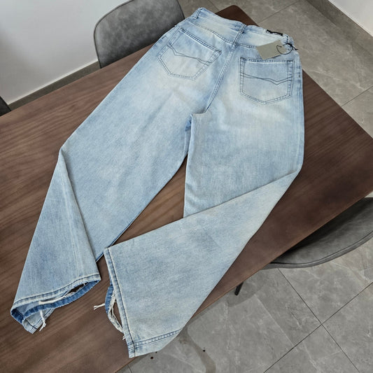 GTR/발렌시아가 여성 끈 뽑기 와이드 데님 팬츠