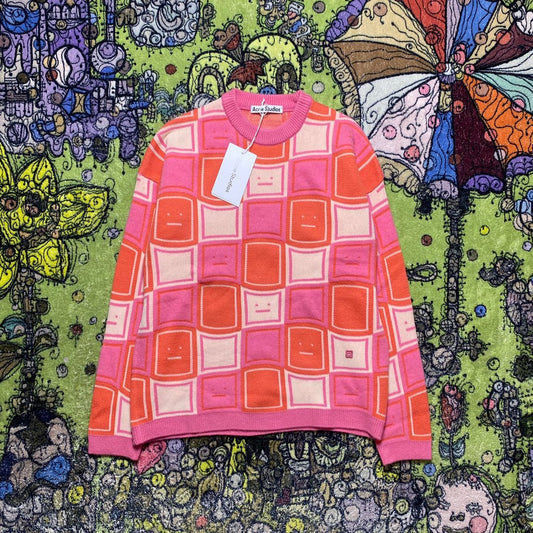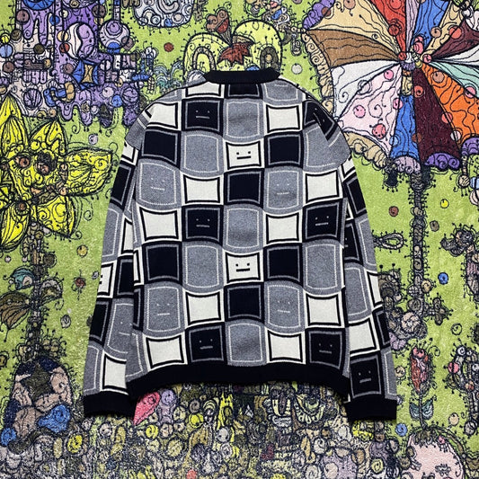 zzll /아크네스튜디오 남여 네모난 웃는 얼굴 라운드넥 니트