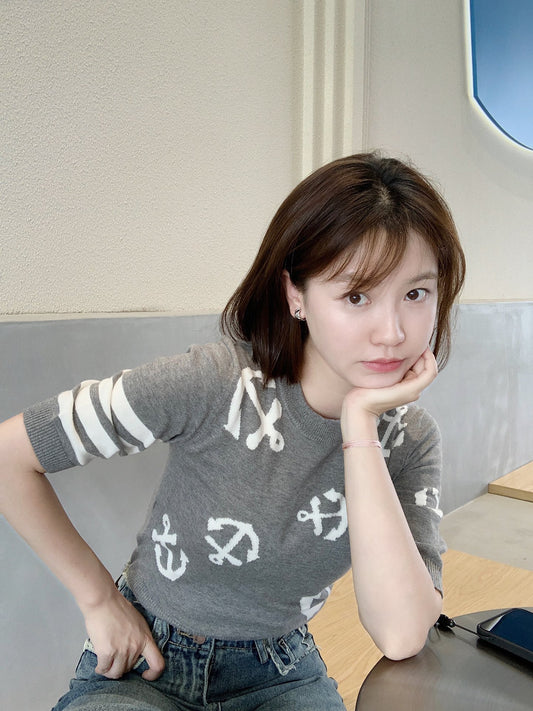 • 대리석 / 톰브라운 23 봄 여름 새 스타일 순수 여성용 앵커 니트 반팔 니트