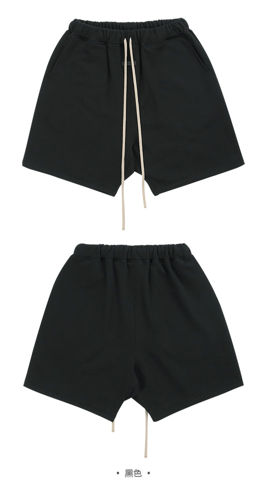 세나 / FOG ESSENTIALS 여덟 번째 시즌 더블 라인 하이 스트리트 캐주얼 루즈 블랙 플로킹 프린트 드로스트링 쇼츠
