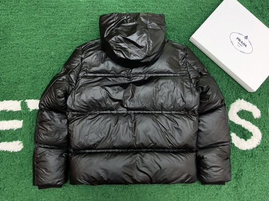 R공장 /프라다 남성 가벼운 재생 나일론 후드 다운재킷