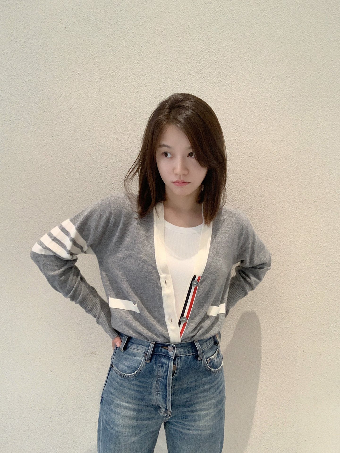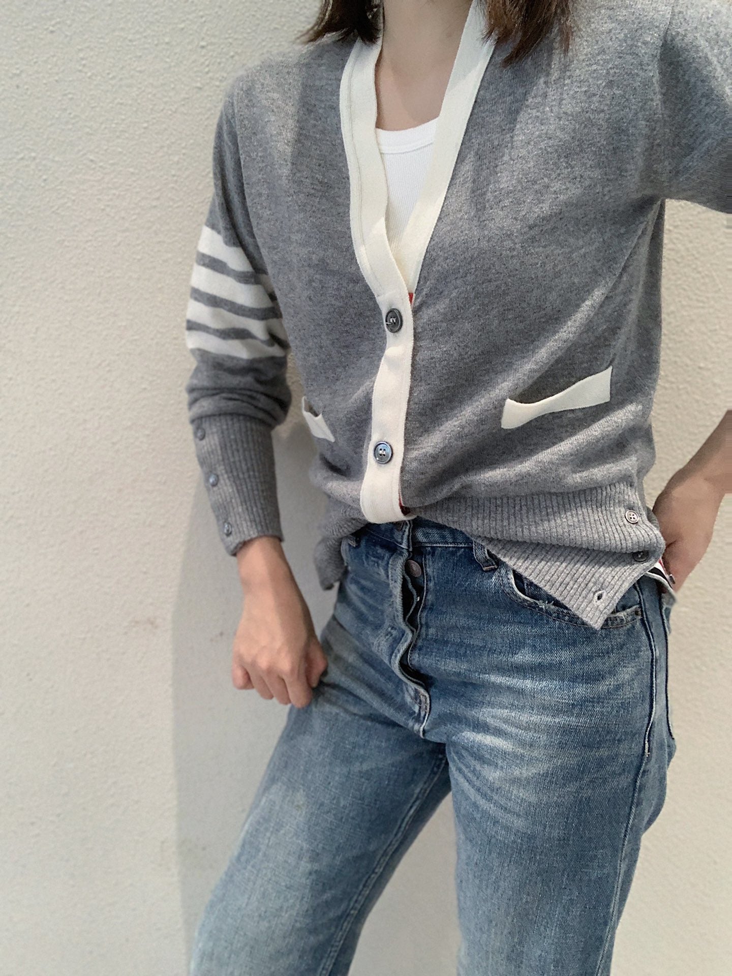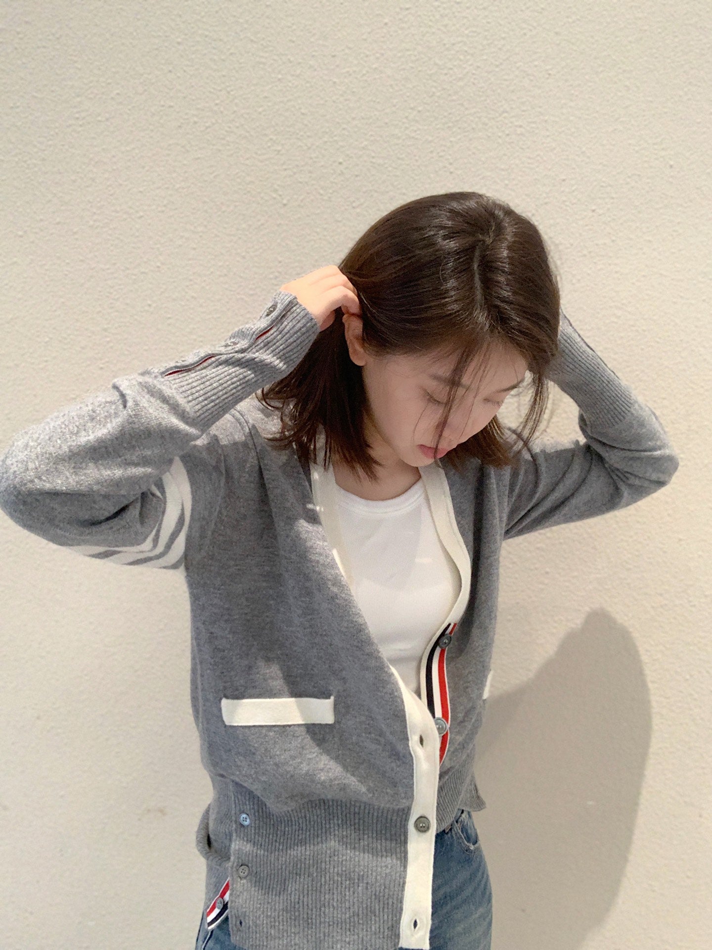 대리석 / 화이트 엣지 톰브라운 캐쉬미어 가디건