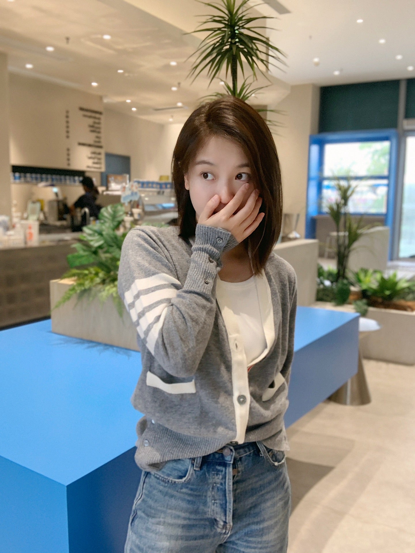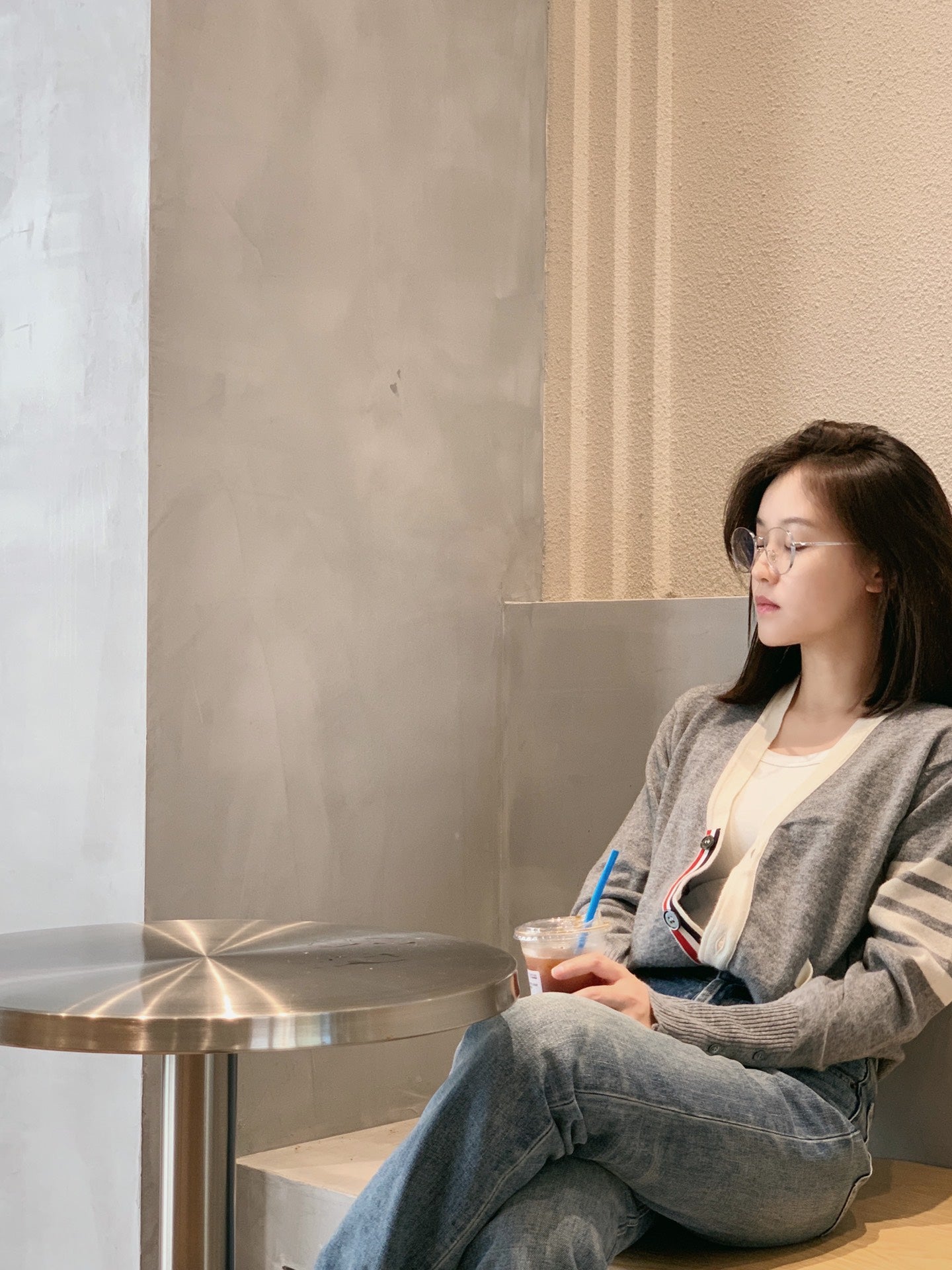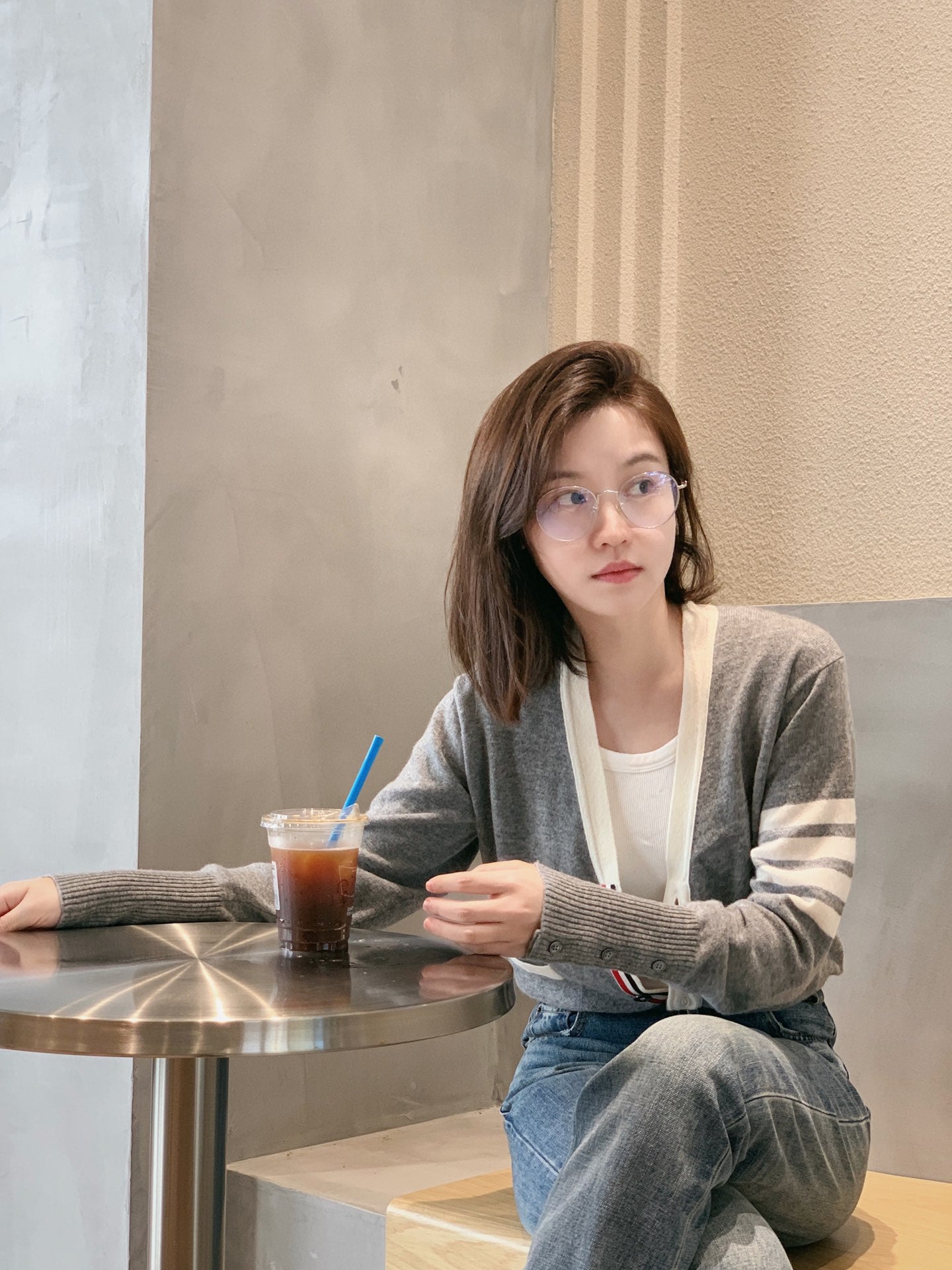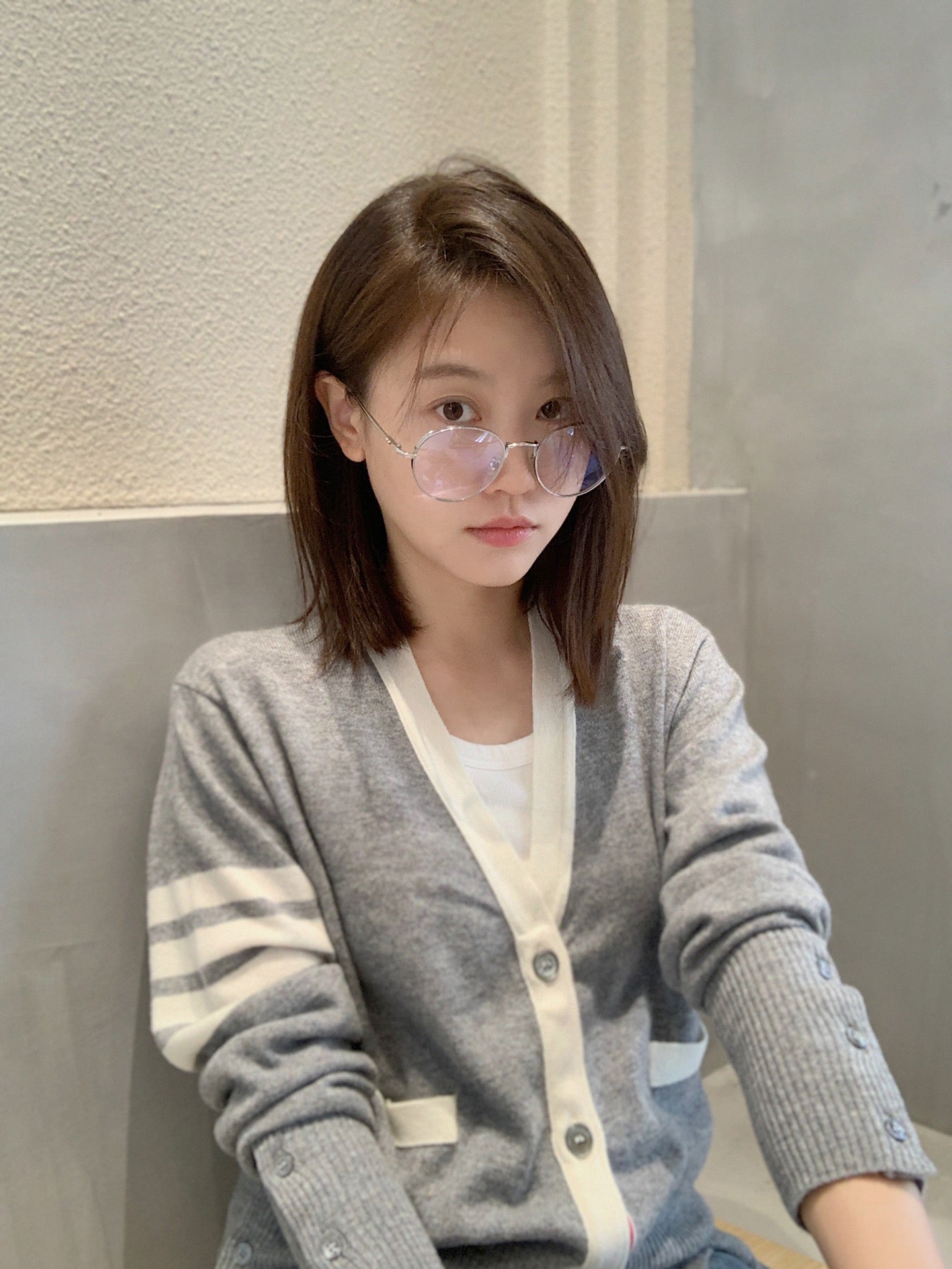 대리석 / 화이트 엣지 톰브라운 캐쉬미어 가디건