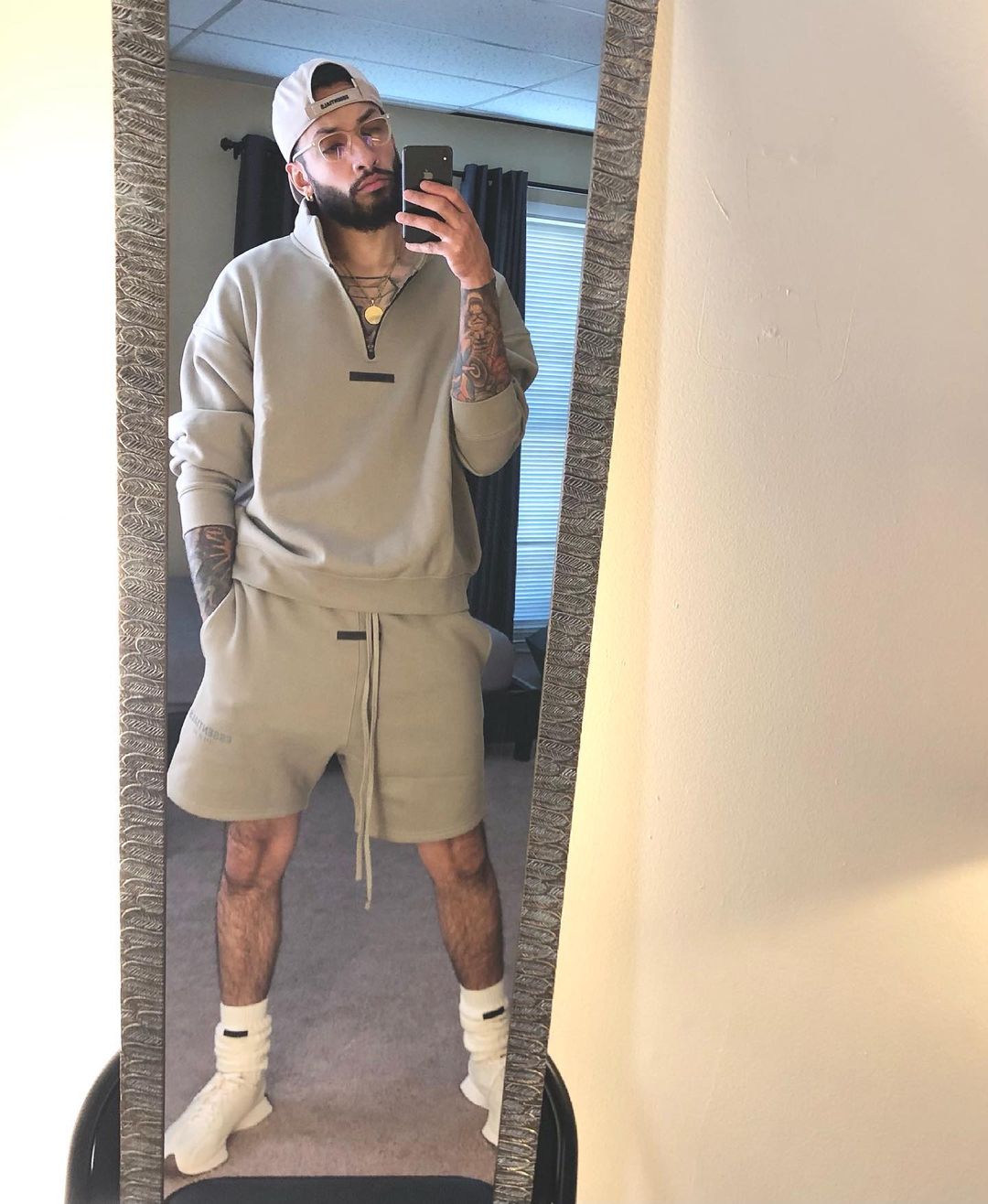세나 / FOG ESSENTIALS 더블 라인 일곱 번째 시즌 하이 스트리트 루즈 캐주얼 스포츠 3M 반사 드로스트링 반바지