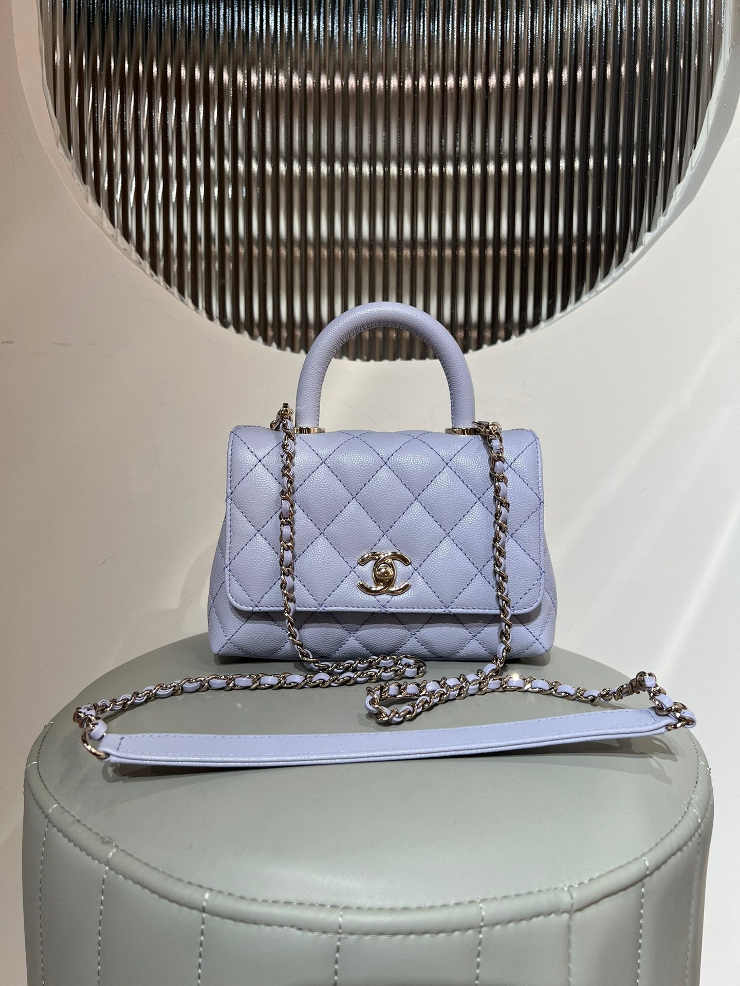 지존 / 샤넬 오리지널 가죽 마이크로 캐비어 사이즈 13x19x9cm 퍼플 라이트 골드 버튼