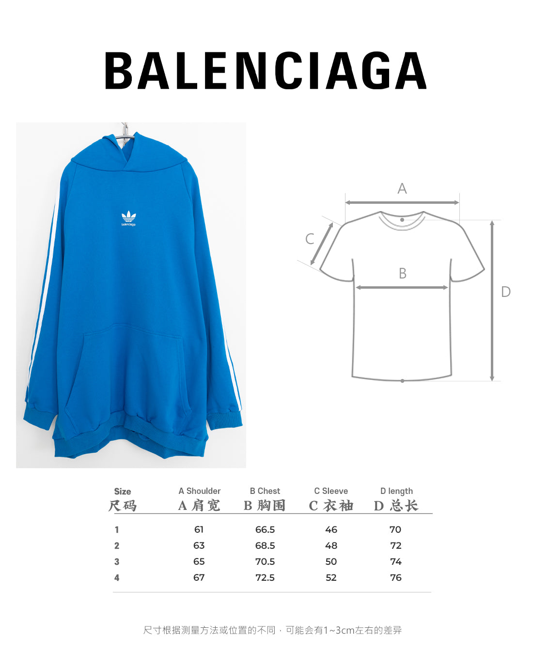 체인 / 발렌시아가 아디다스 로고 프린트가 있는 남성 및 여성용 후드티