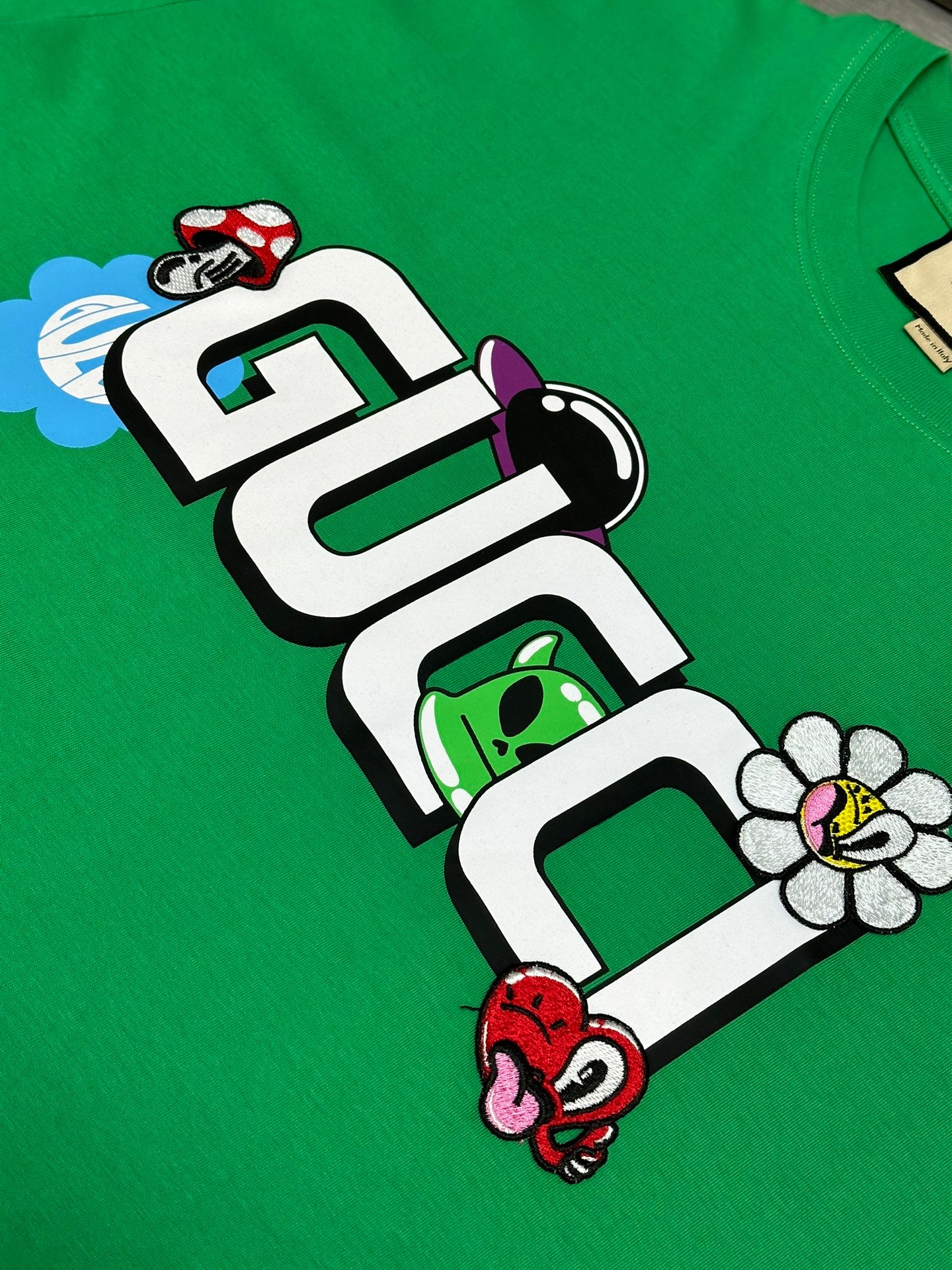 체인2호 / 구찌 반팔, 찌 카툰 버섯 자수 플라워 프린트 반소매