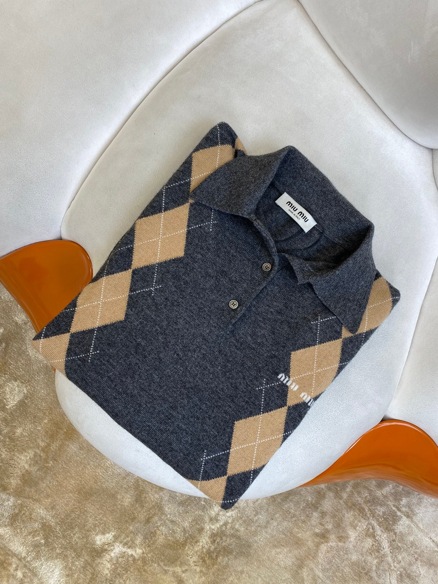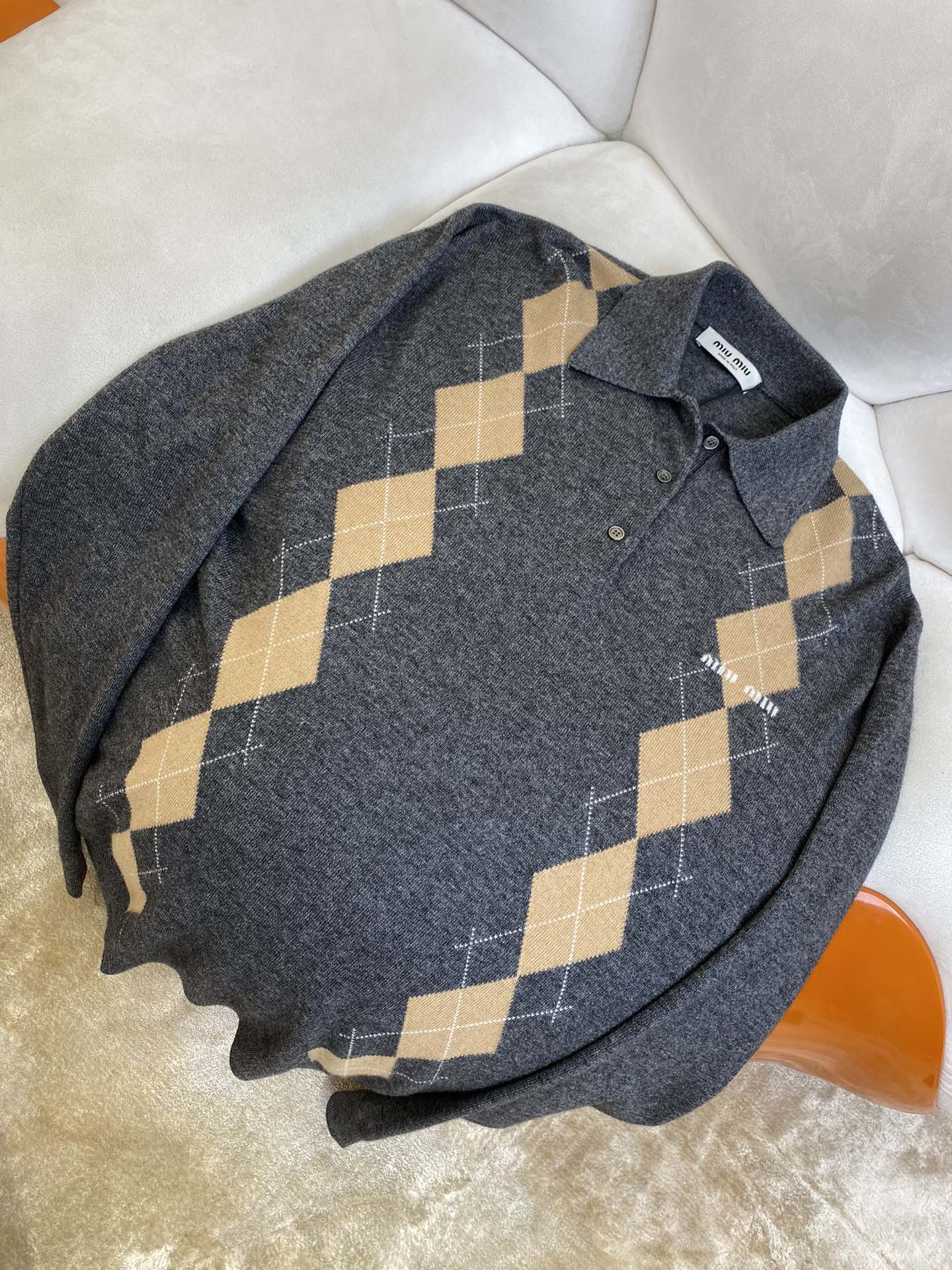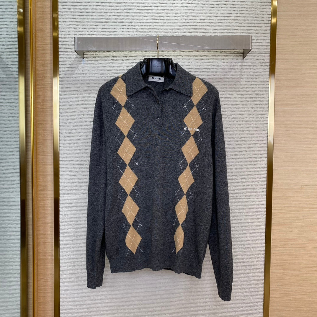체인2호/미우미우 남성 마름모꼴 로고 니트
