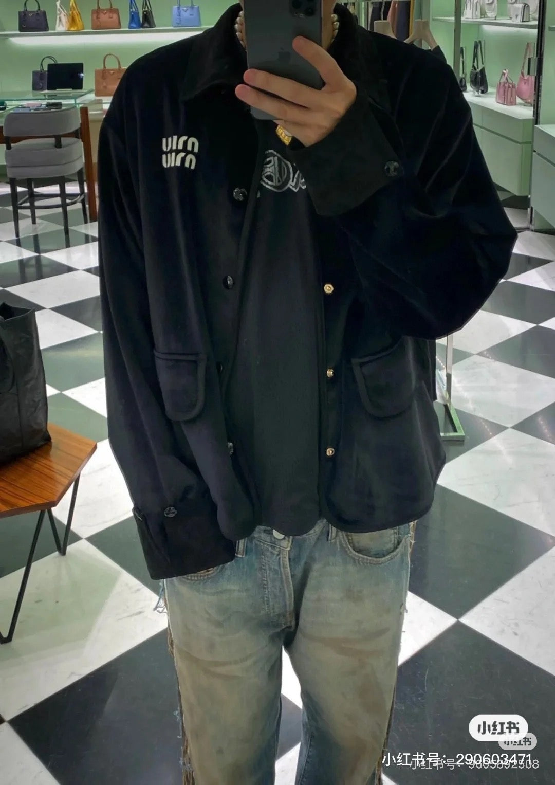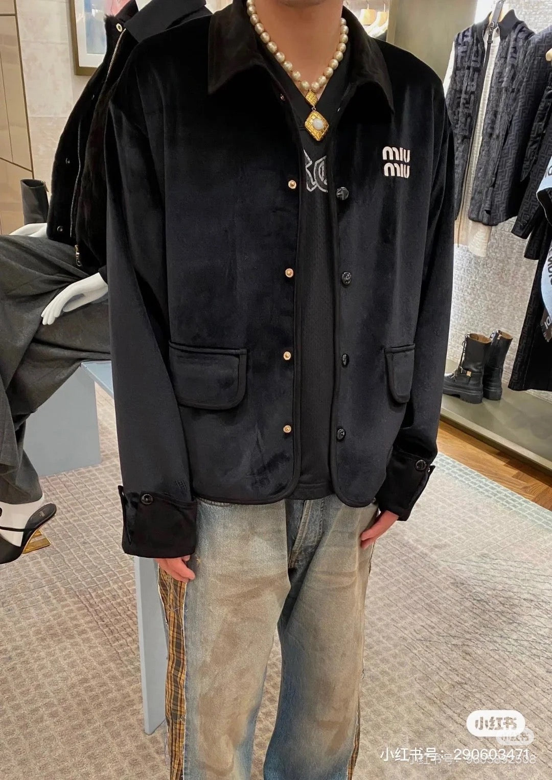 체인2호 / 미우미우 남성 벨벳 패치 자켓