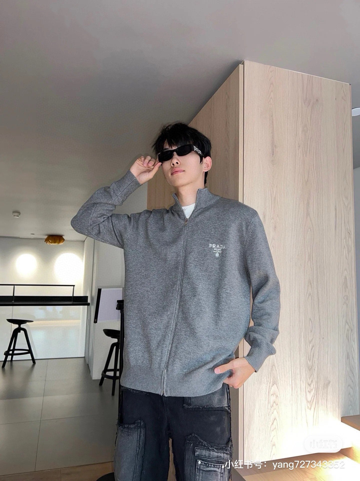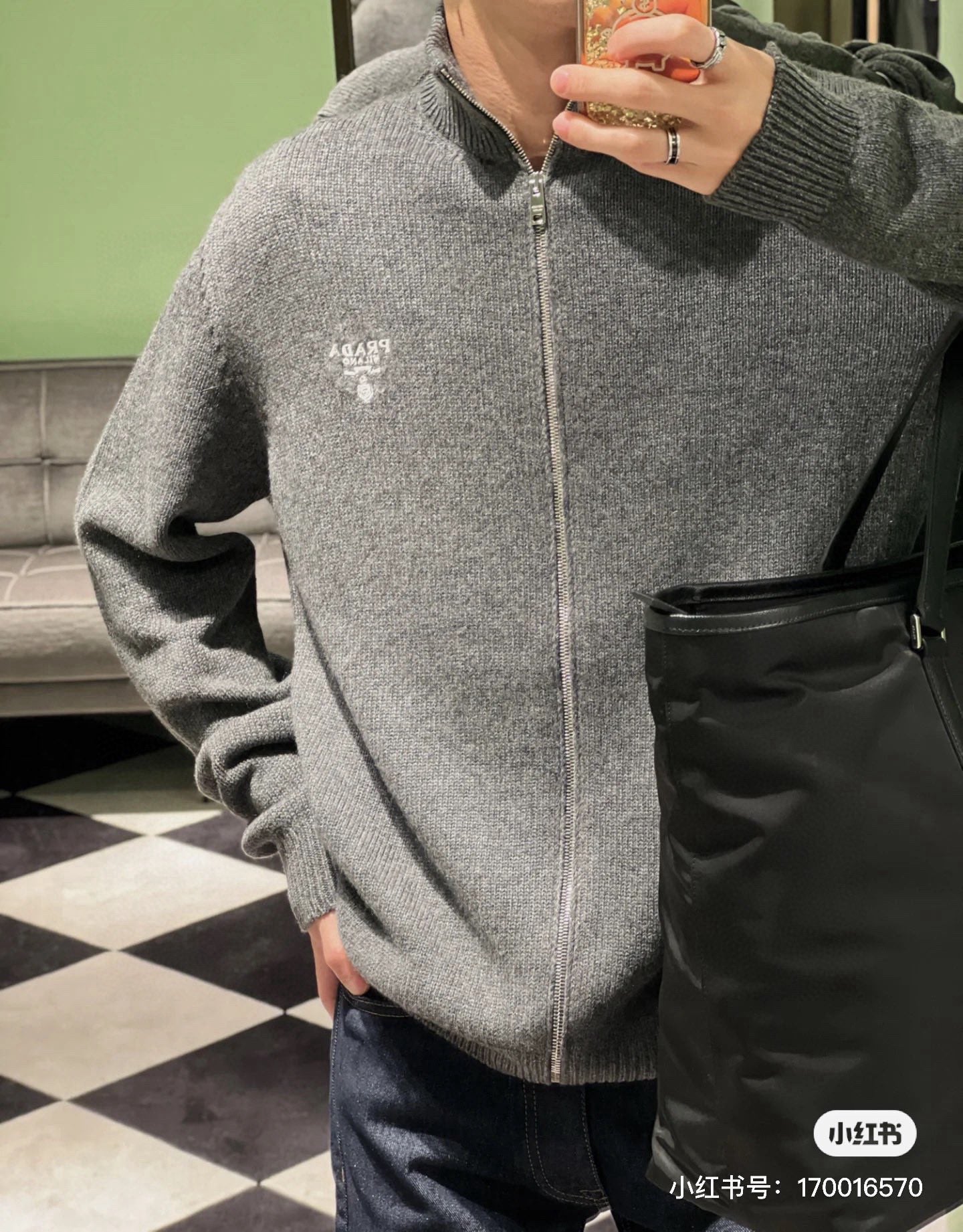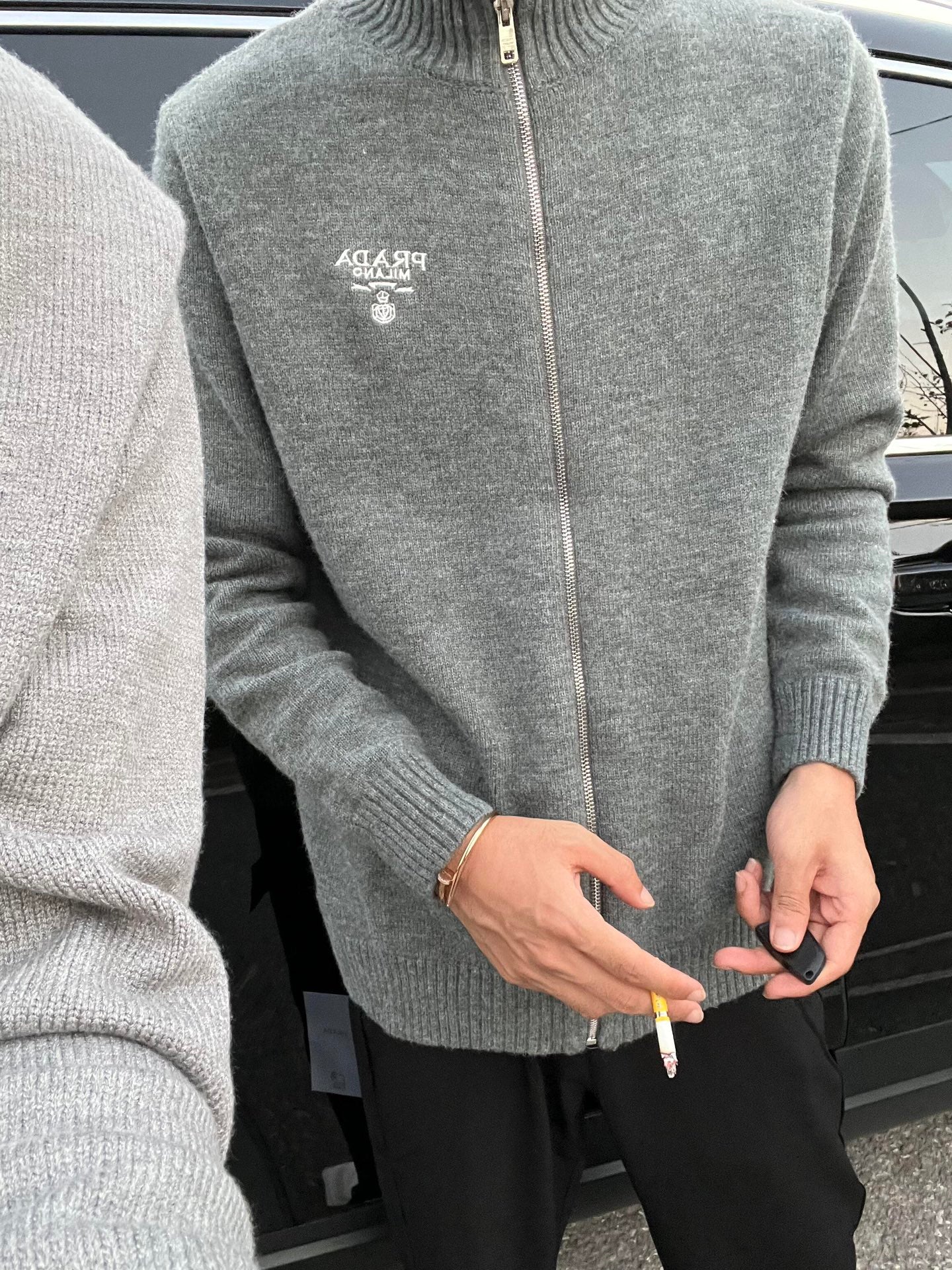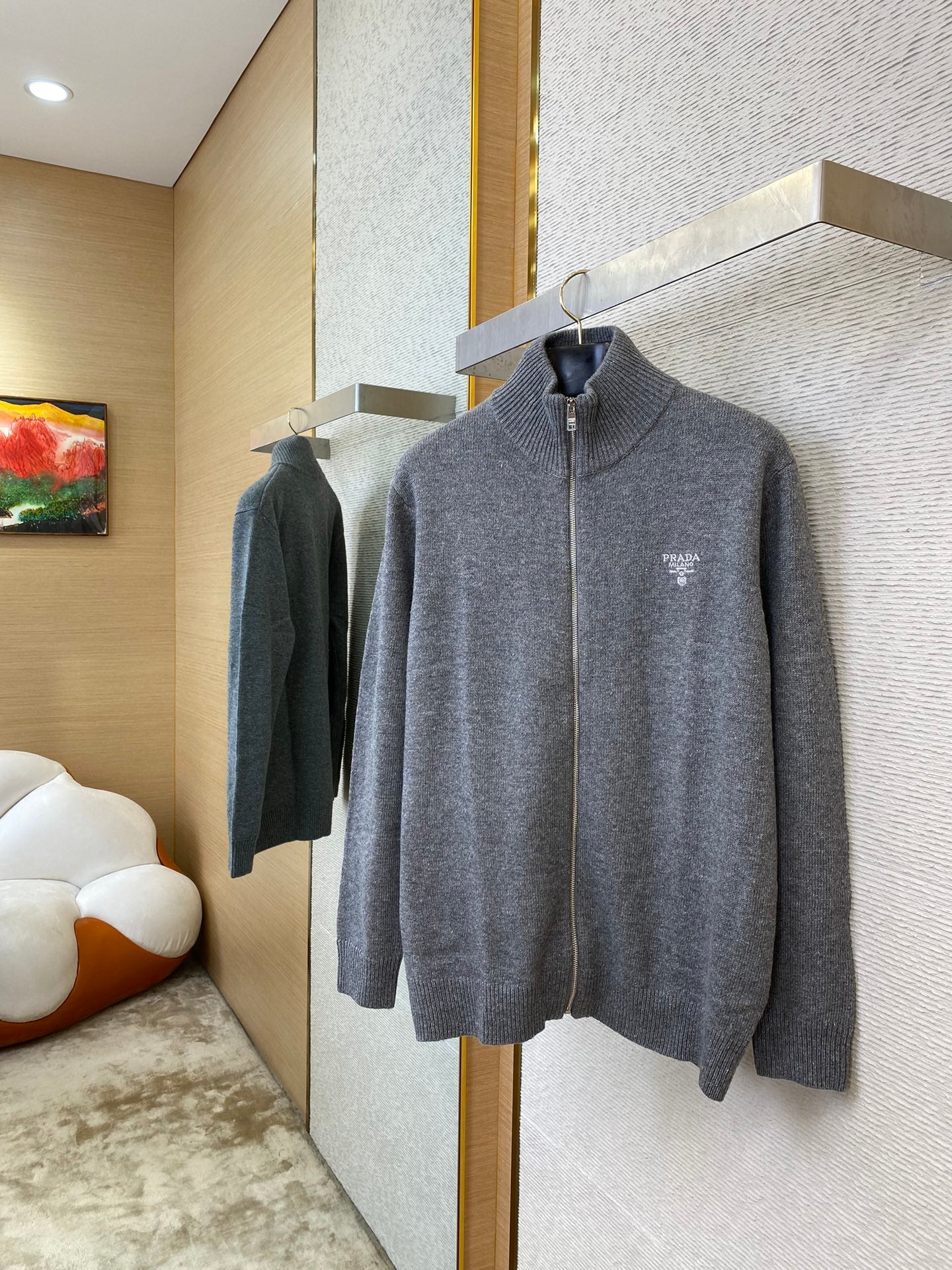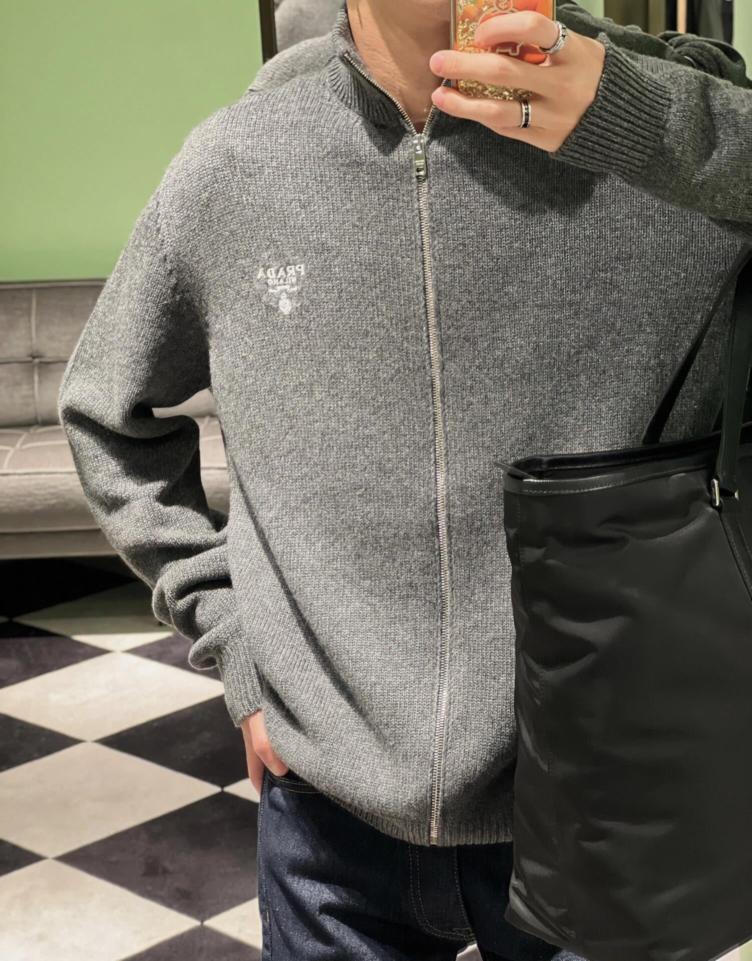 체인2호/프라다 남성 울 자수 지퍼 카디건