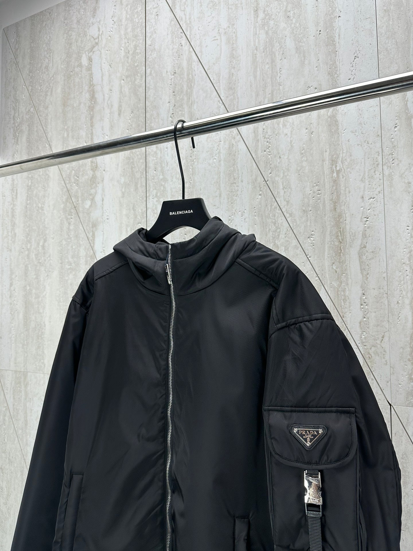 체인2호/프라다 남성 팔 주머니 후드 비행 재킷