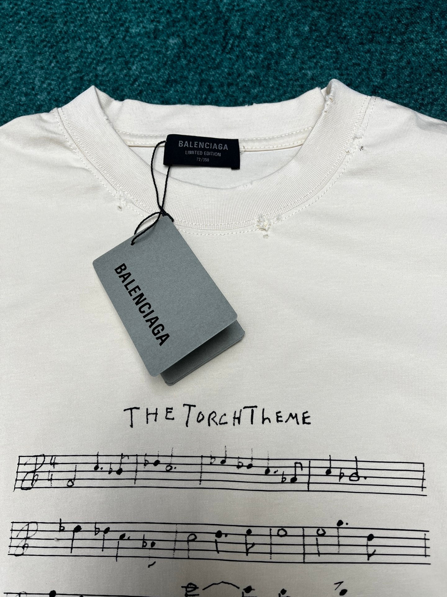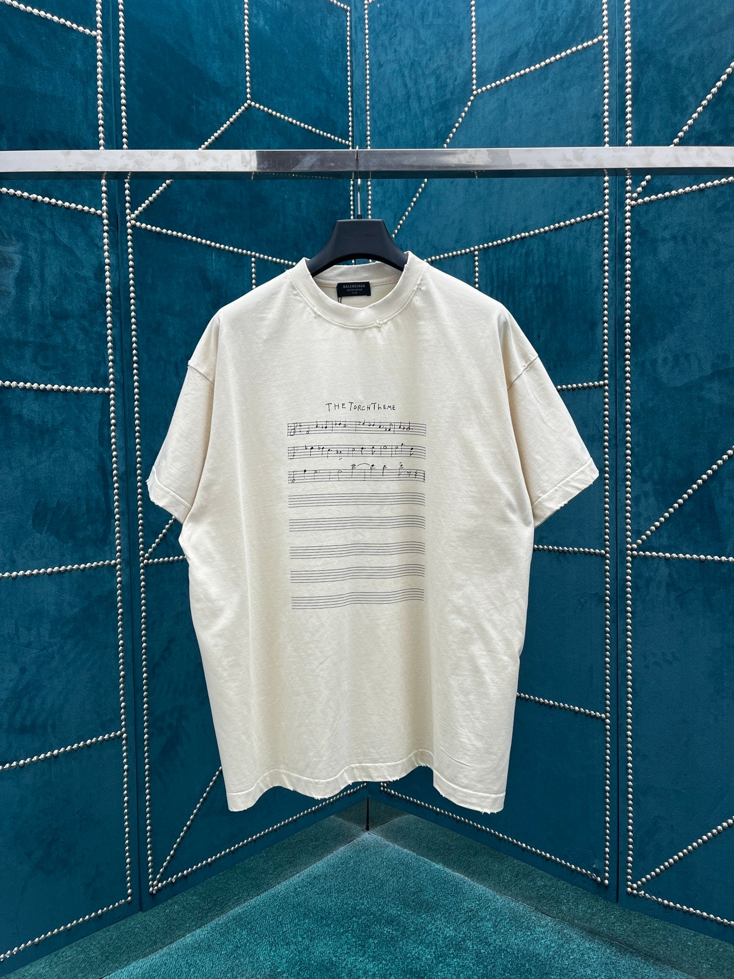 타일공장/발렌시아가 2024ss 신상 음악 기호 파손 어깨 너비 티셔츠