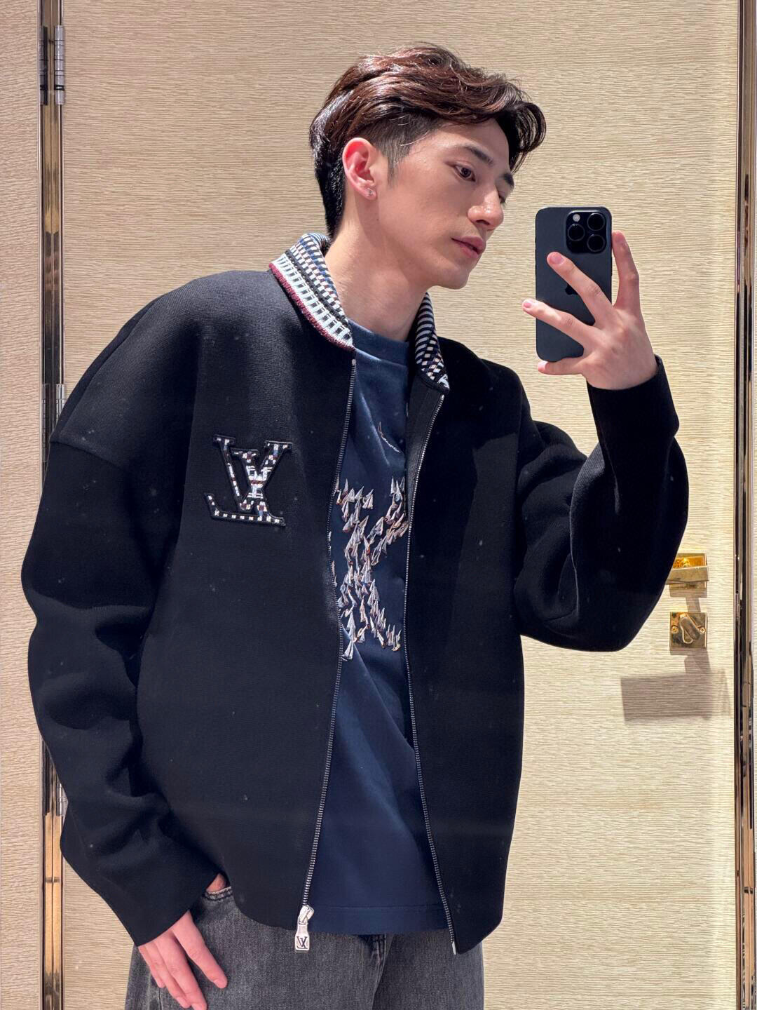 GTR / 루이비통 남성 칼라 로고 집업 니트 자켓