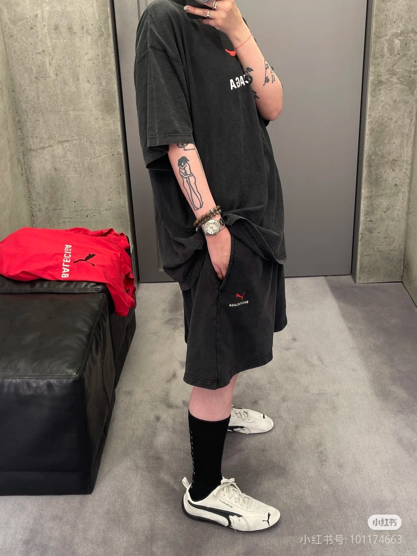GTR / 발렌시아가 남성 자수 워싱 반바지