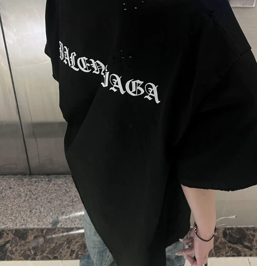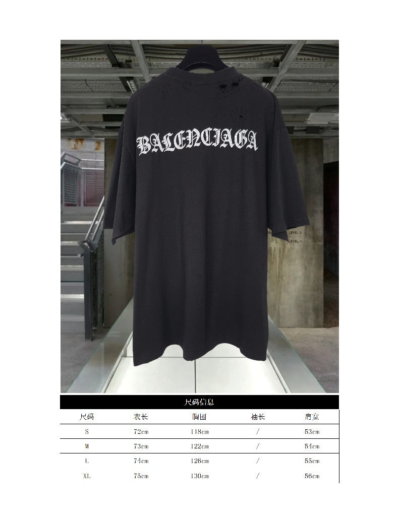 GTR / 발렌시아가 범어 파괴 반팔 티셔츠