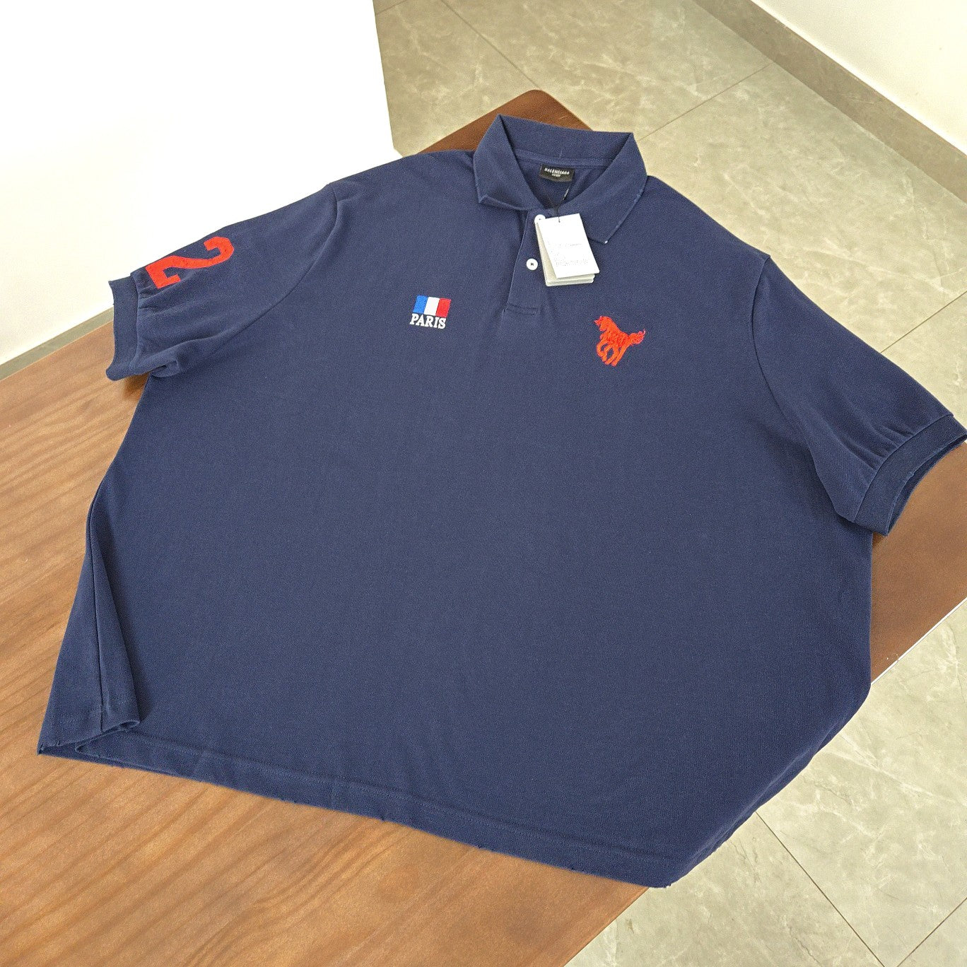 GTR/발렌시아가 전마 터틀넥 자수 자모 폴로 반팔 셔츠