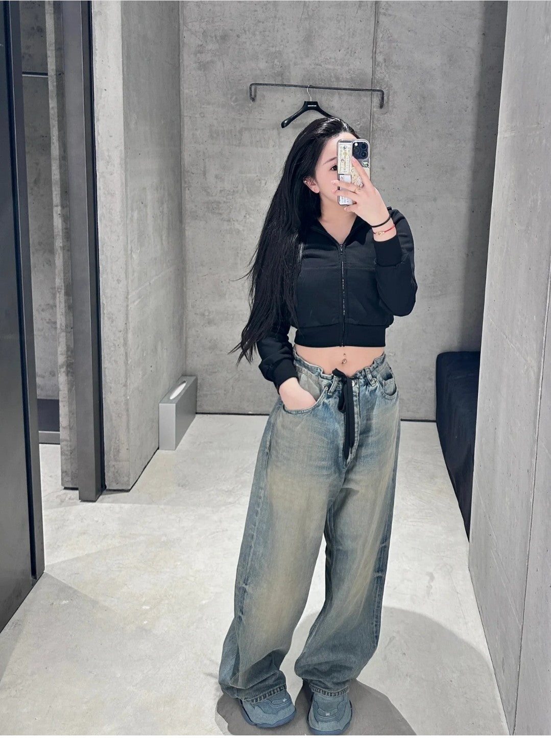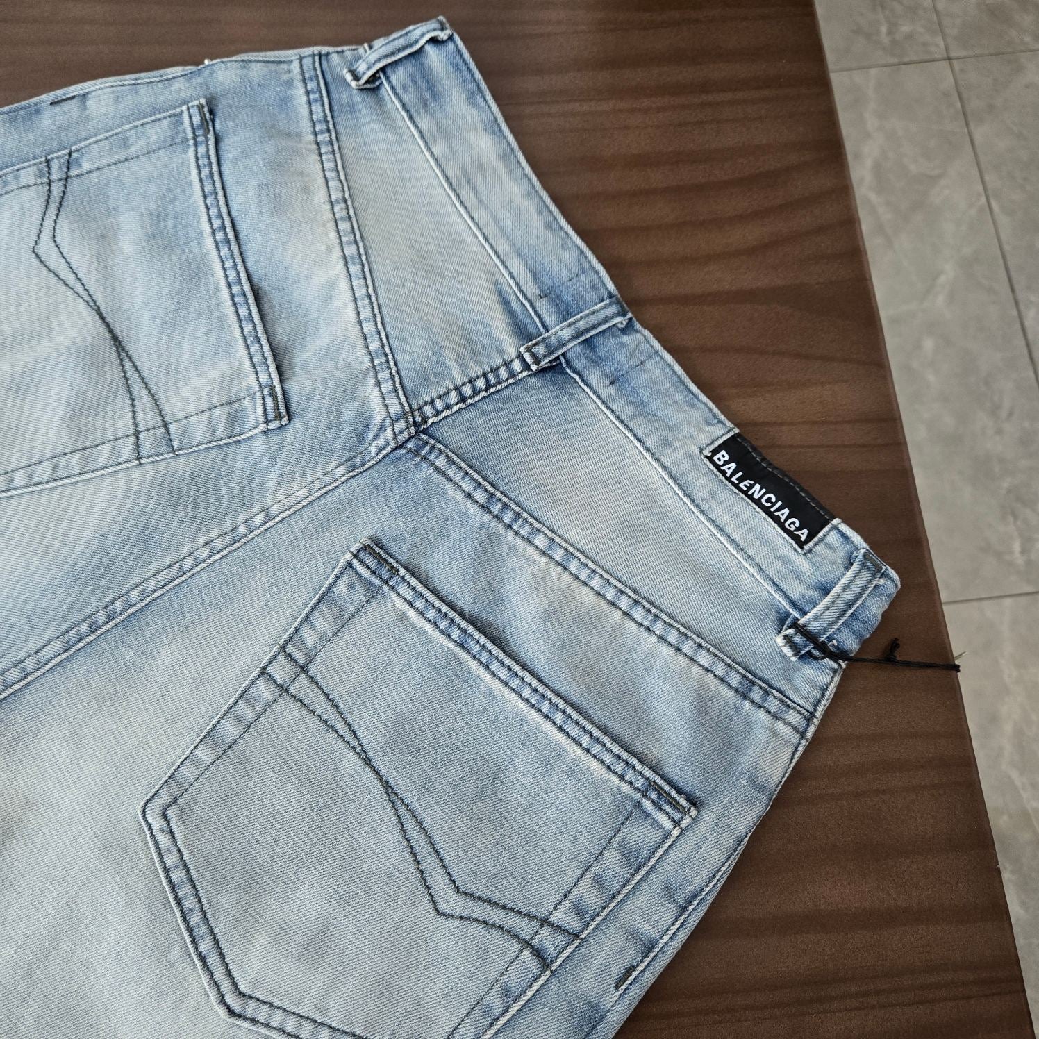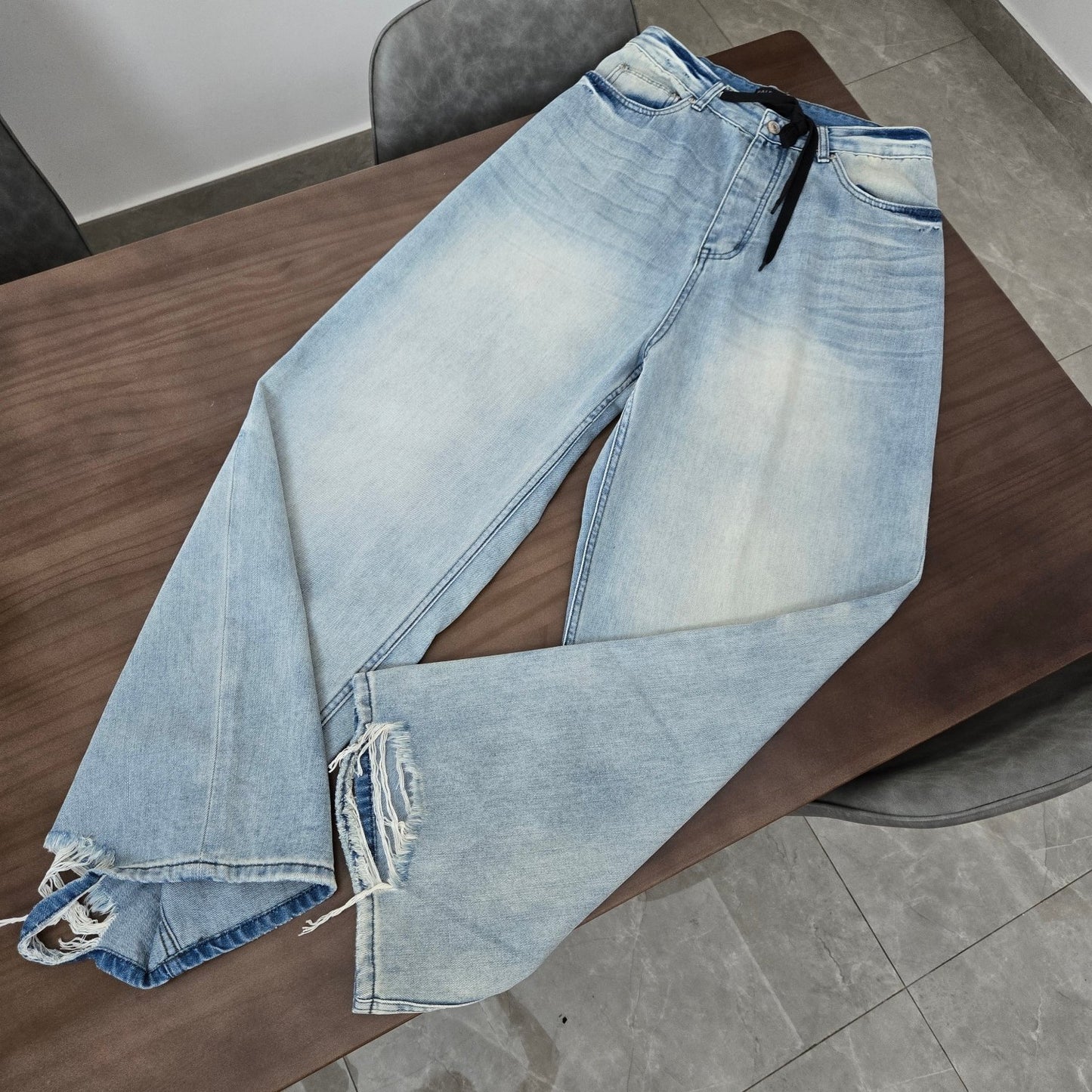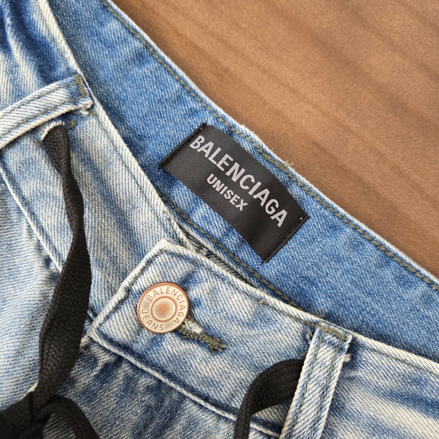 GTR / 발렌시아가 청바지 , BLCG 24SS 드로스트링 디스트로이드 와이드 레그 진