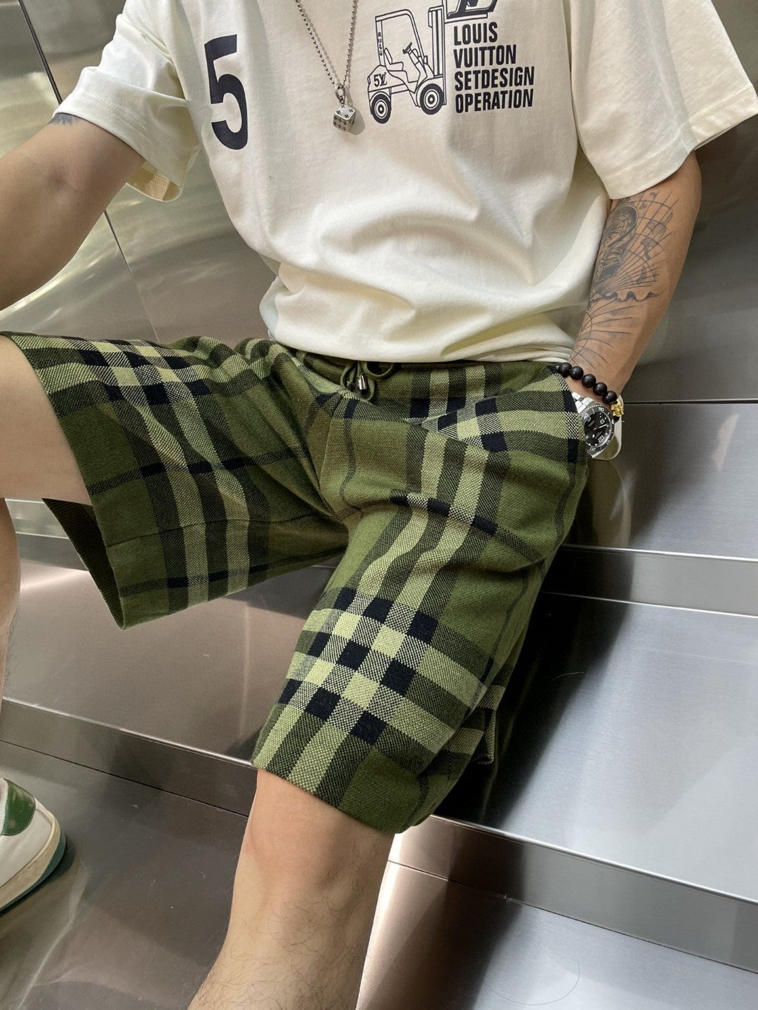 GTR / 버버리 반바지 , BBR 니트 울 플레이드 쇼츠