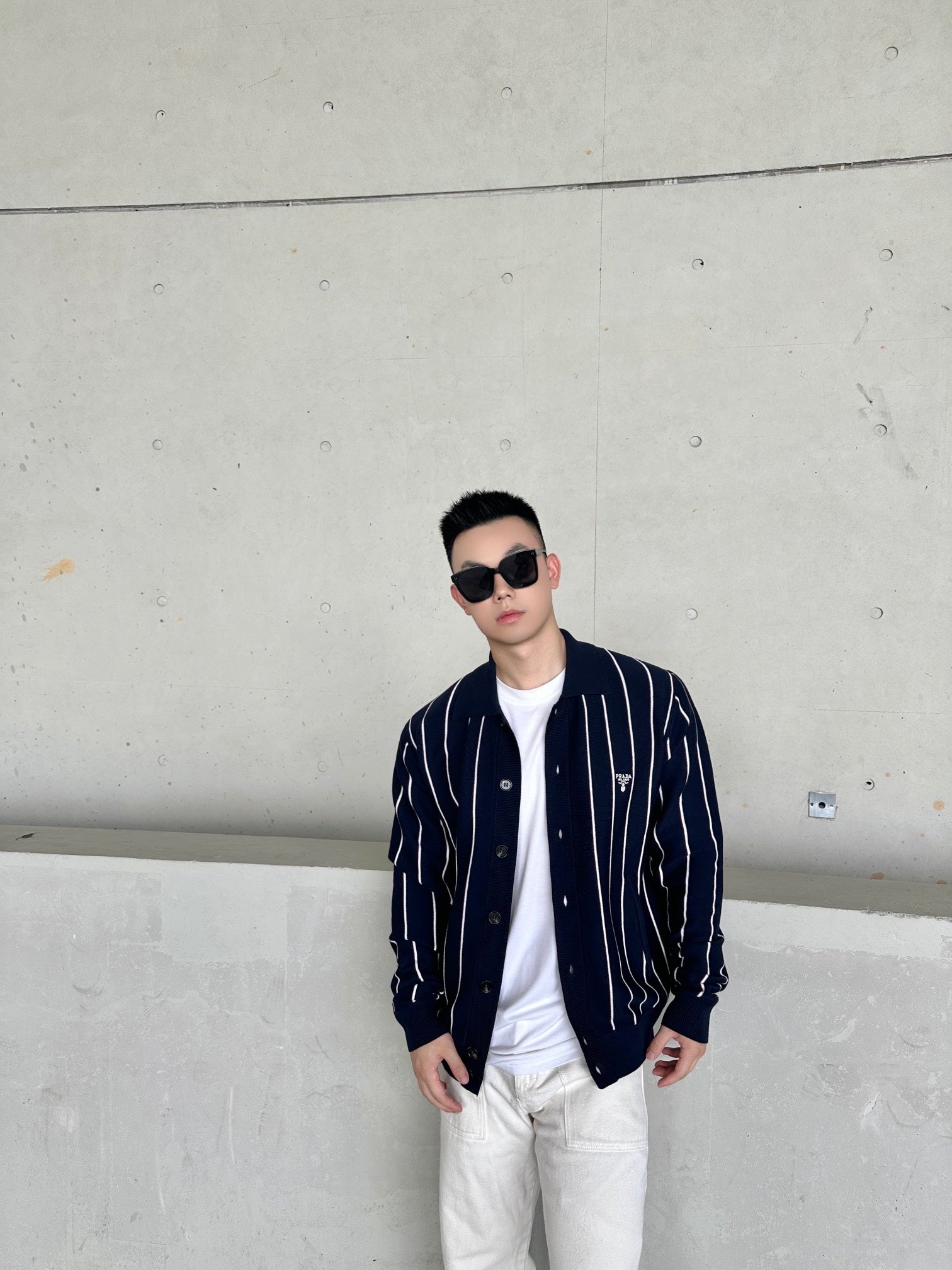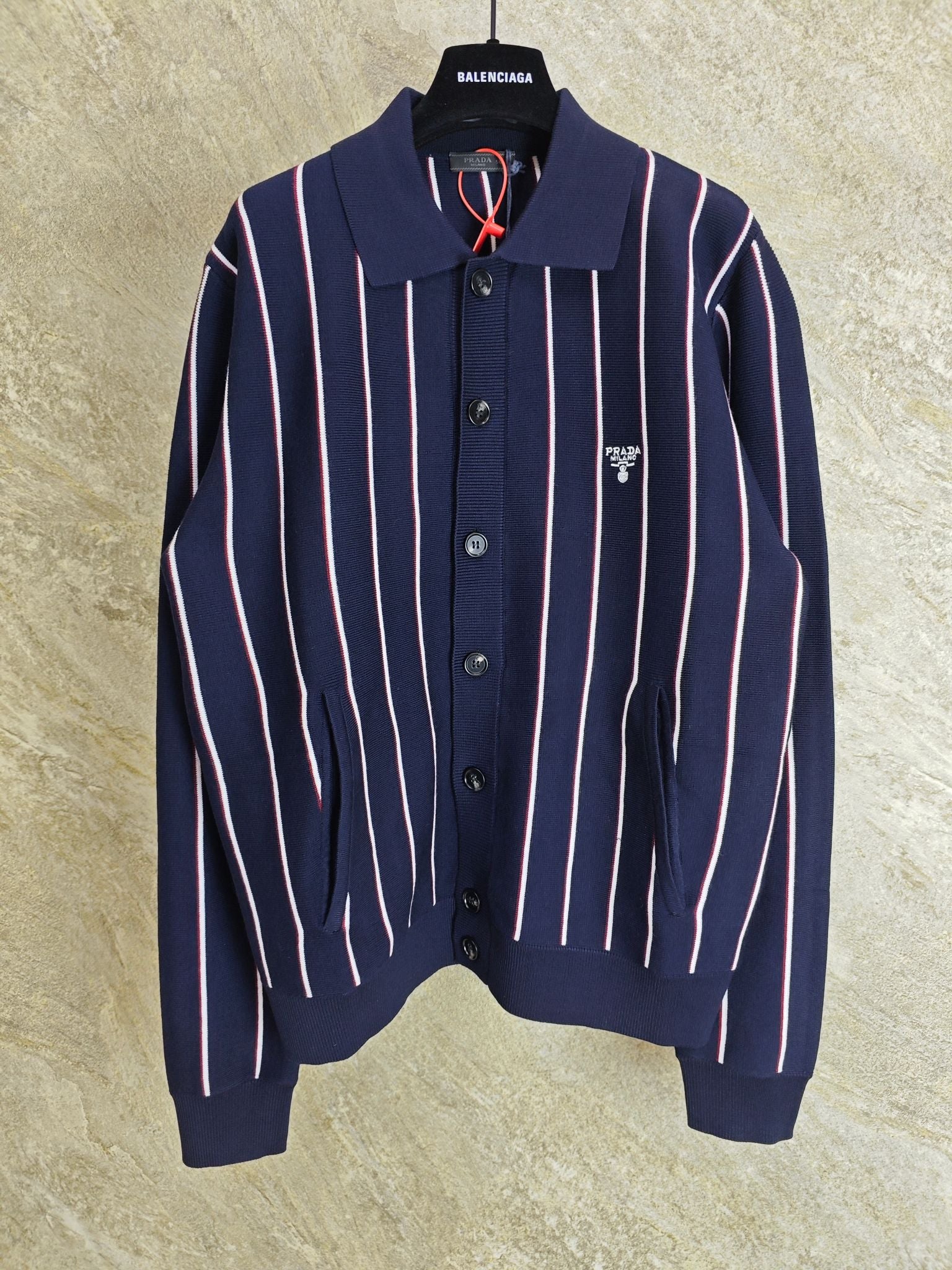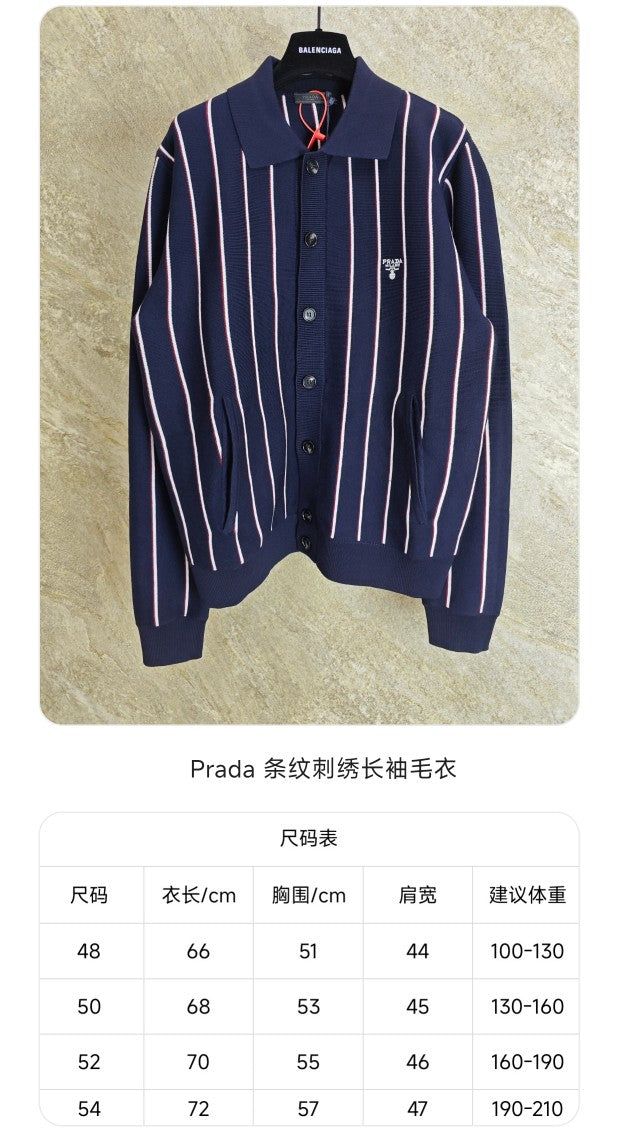 GTR / 프라다 남성 스트라이프 자수 긴팔 니트
