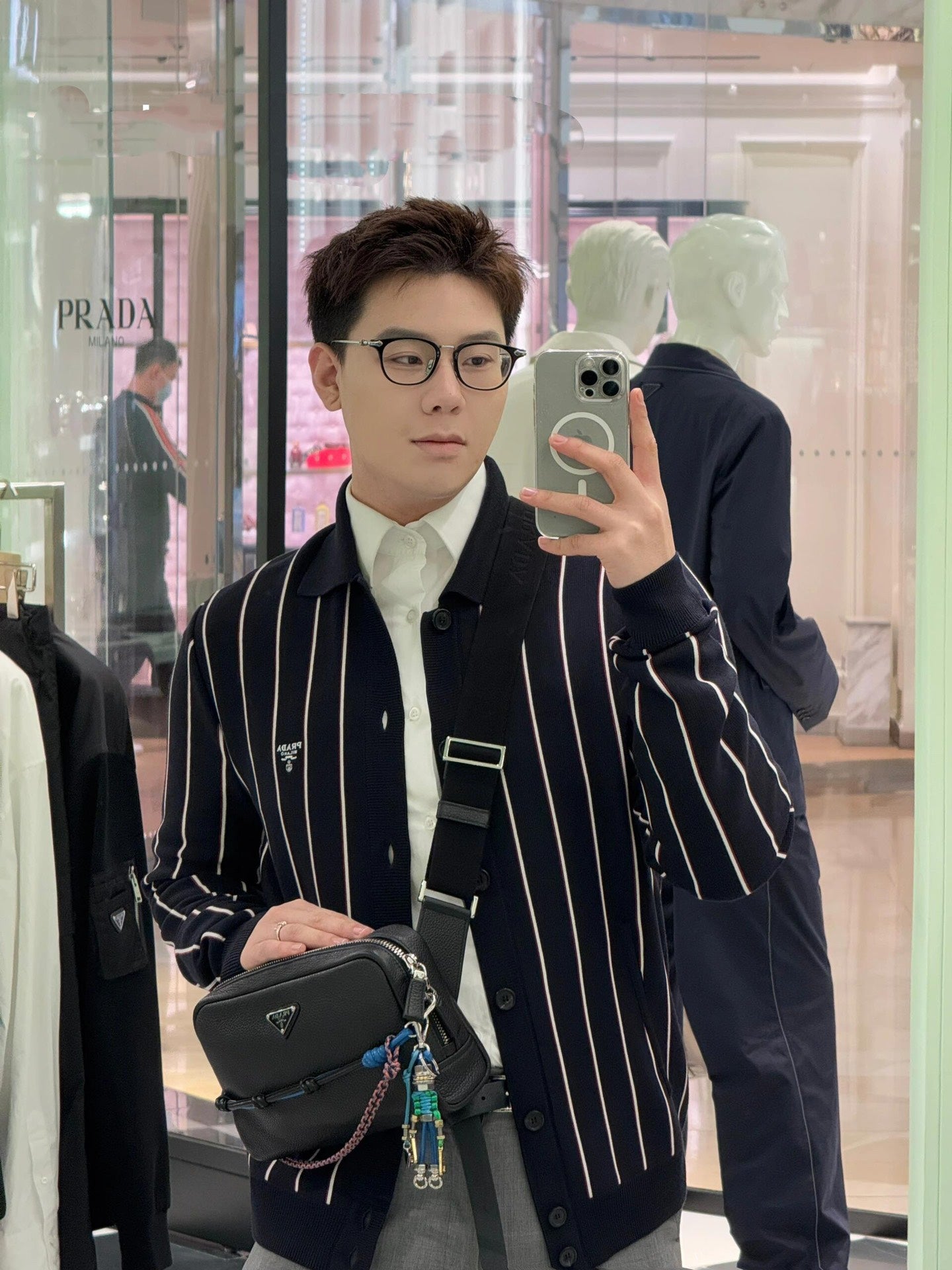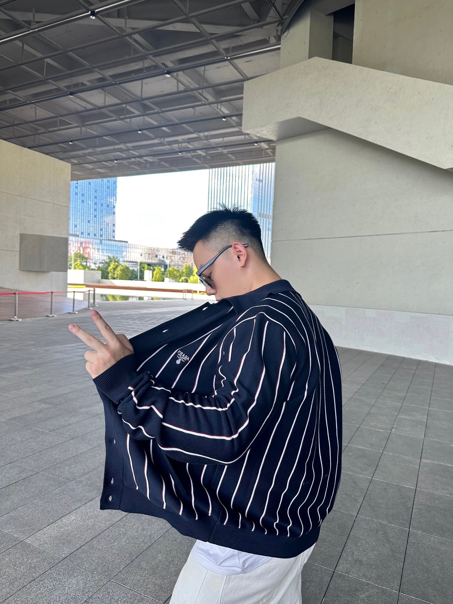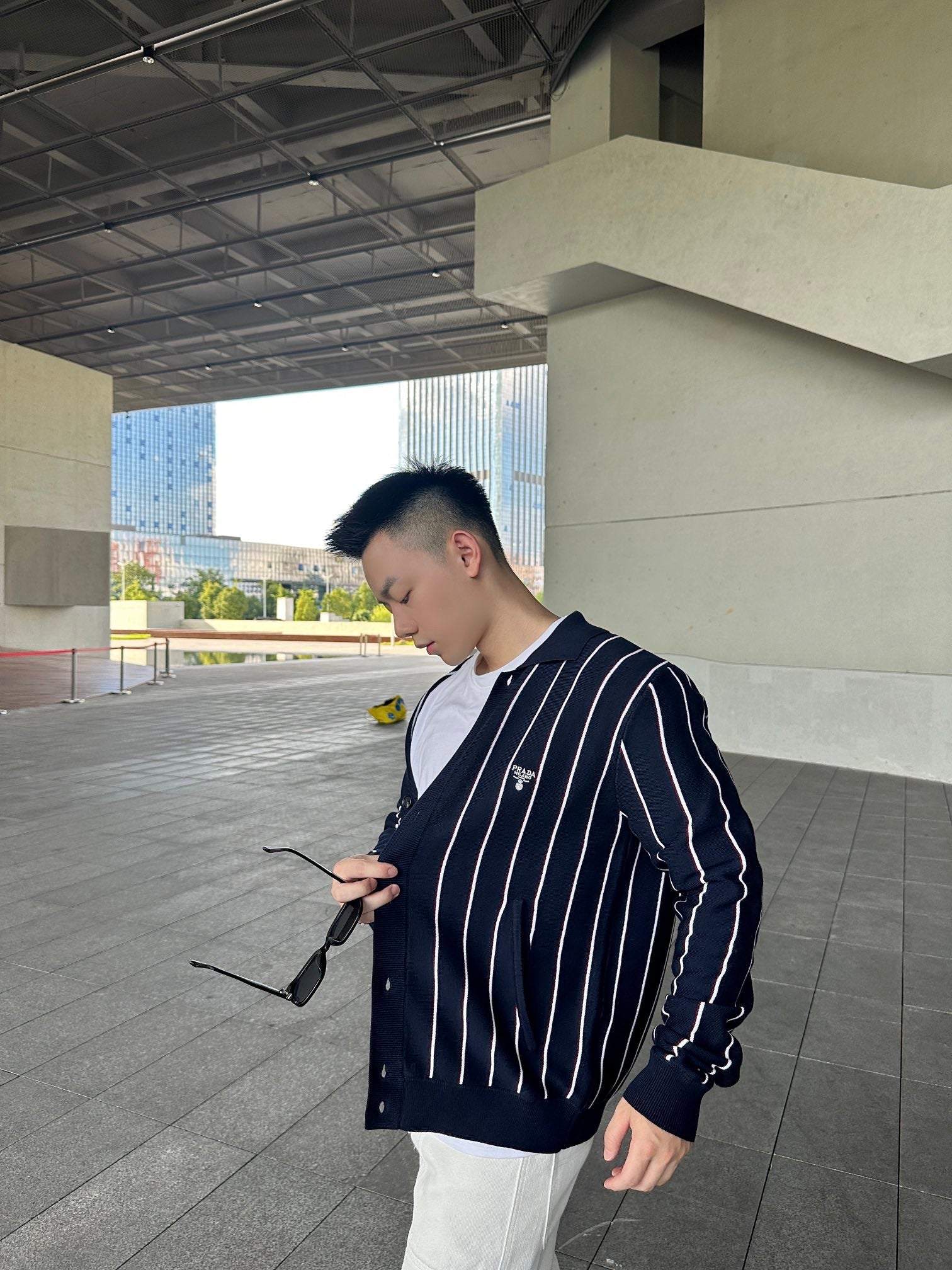 GTR / 프라다 남성 스트라이프 자수 긴팔 니트