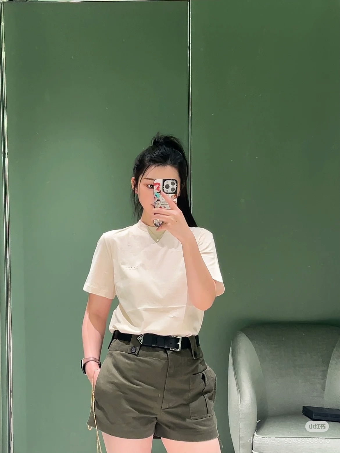 GTR / 프라다 여성 가슴 희미한 알파벳 반팔 티셔츠