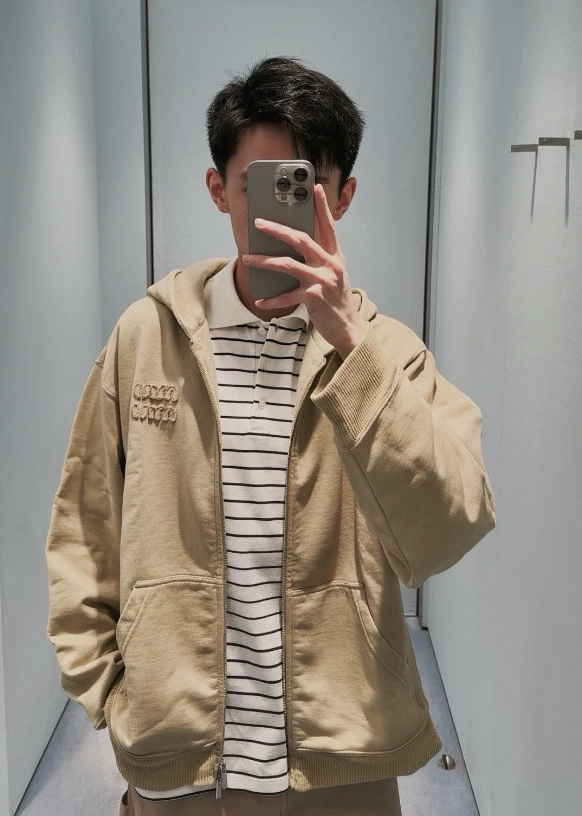 gw/미우미우 남성 베이지 지퍼 후드