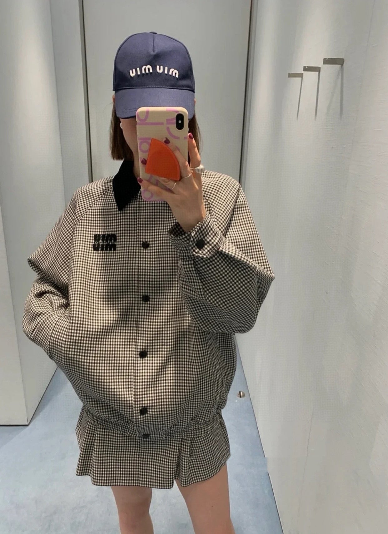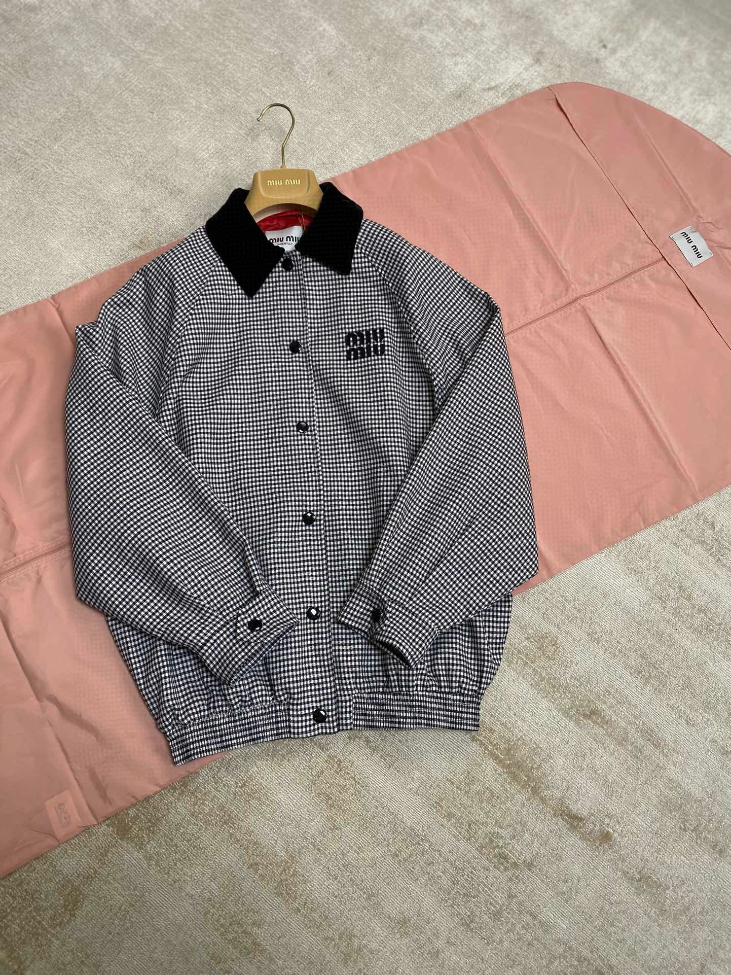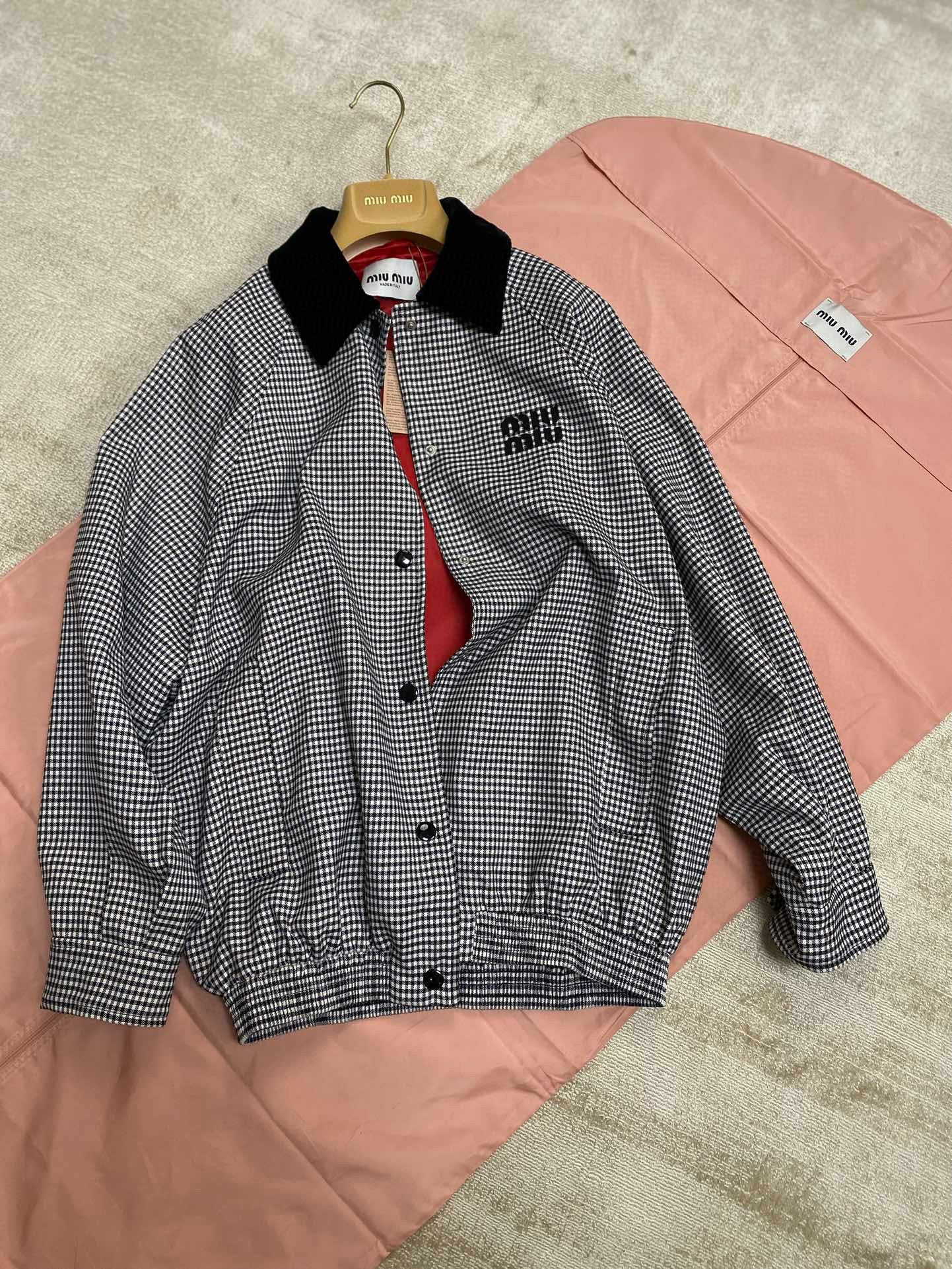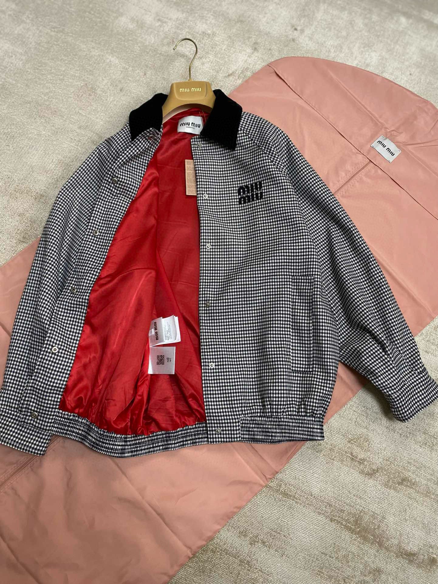 gw/미우미우 남여 클래식 벨벳 칼라 체크 재킷