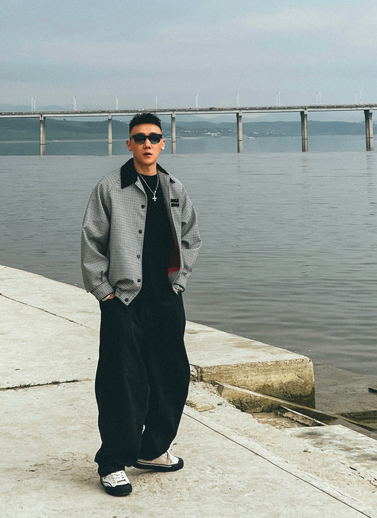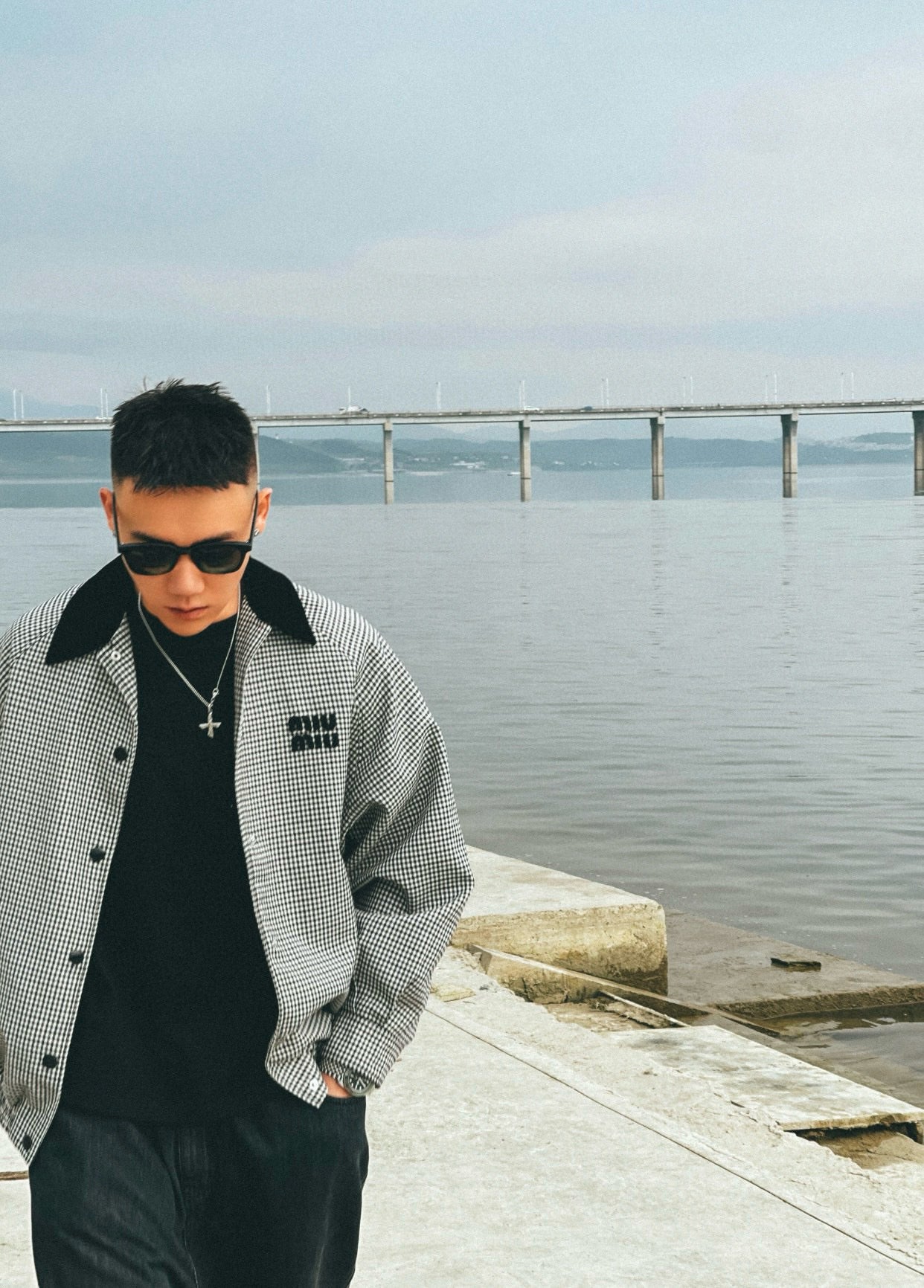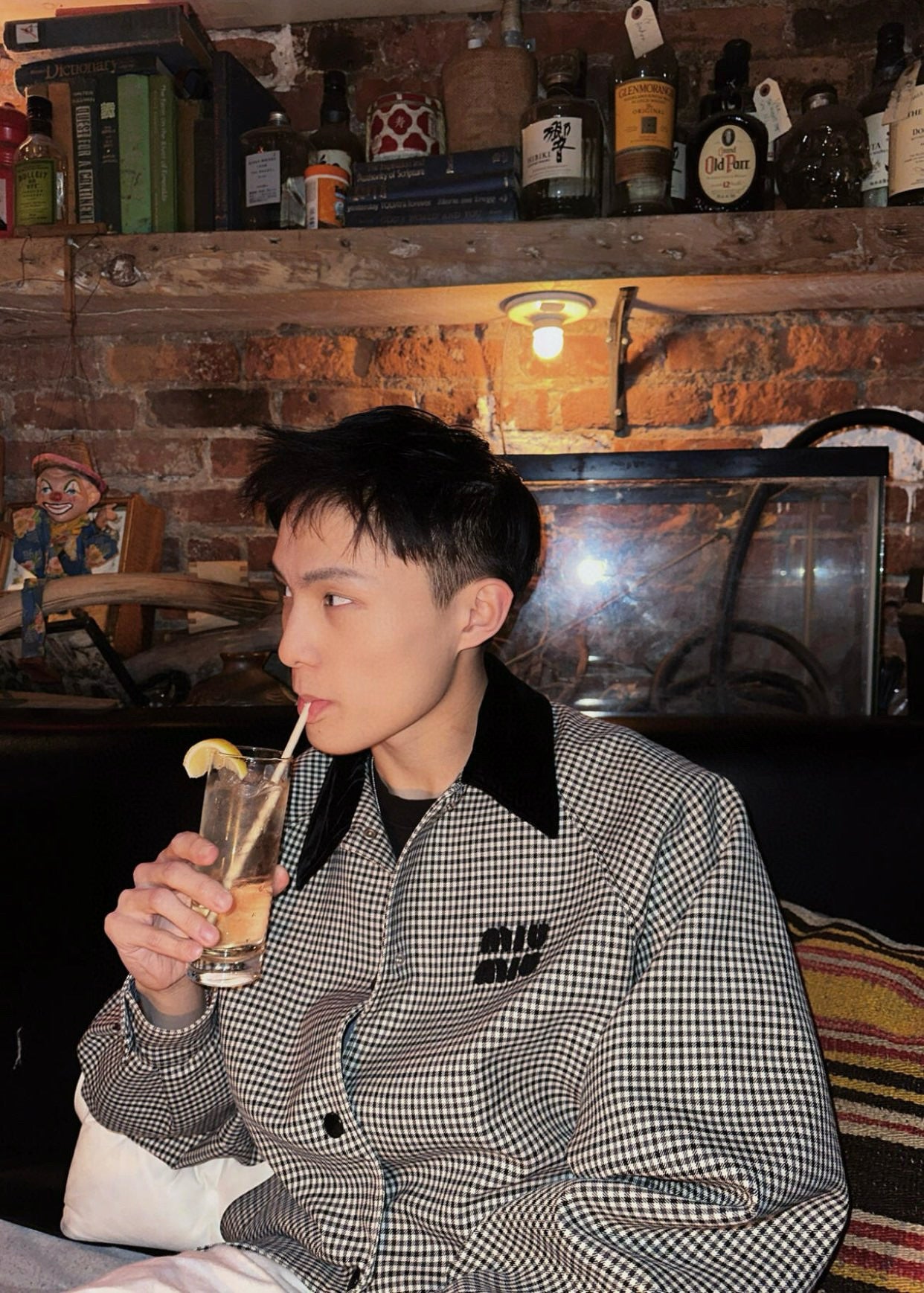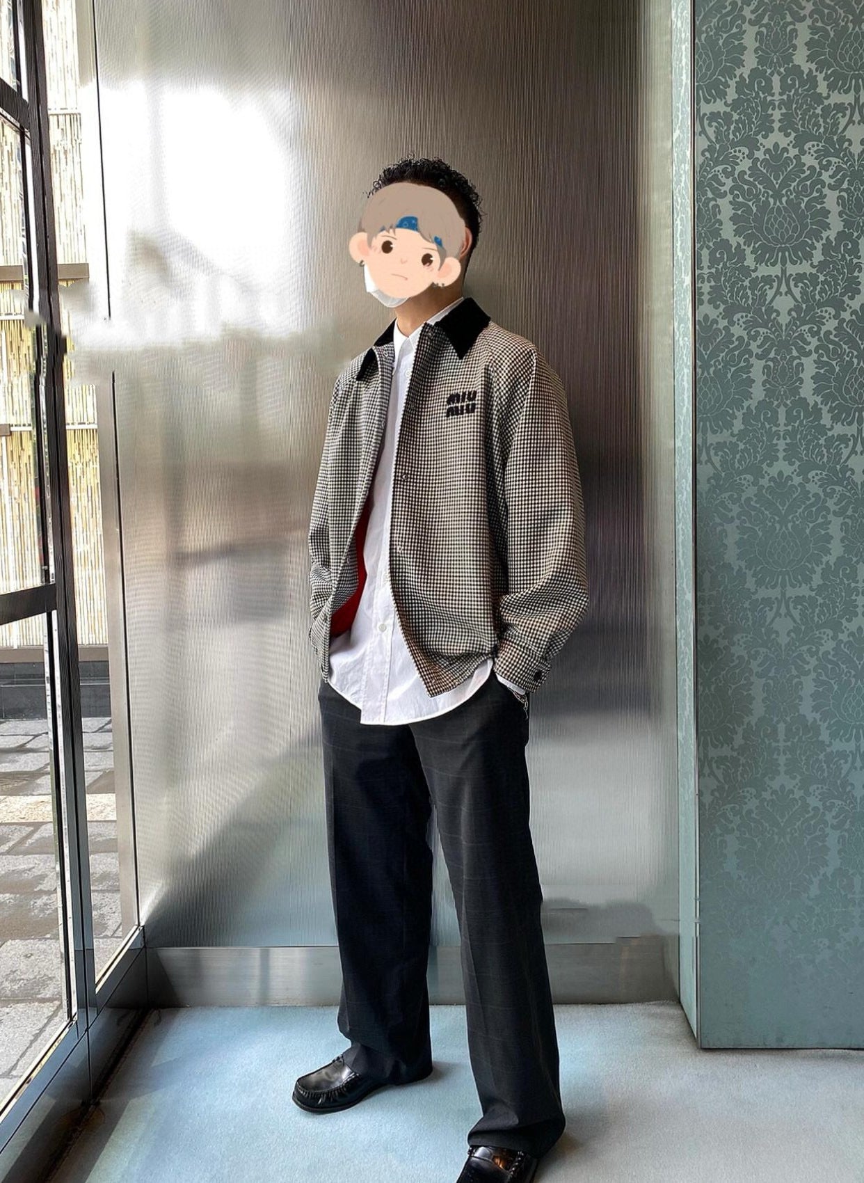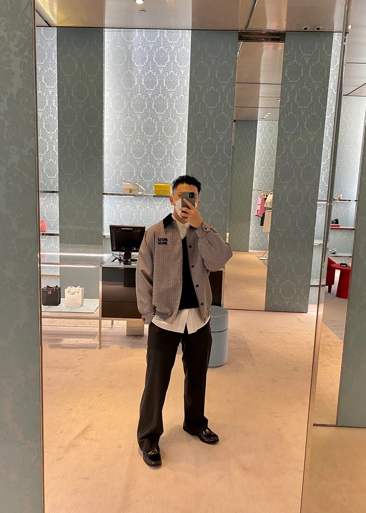 gw/미우미우 남여 클래식 벨벳 칼라 체크 재킷