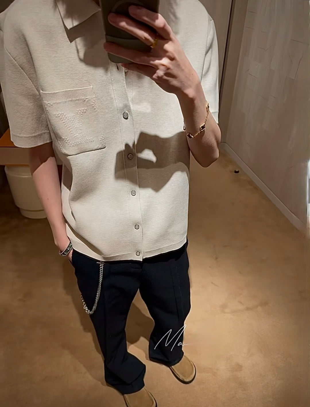 R공장/루이비통 남성 니트 반팔 셔츠