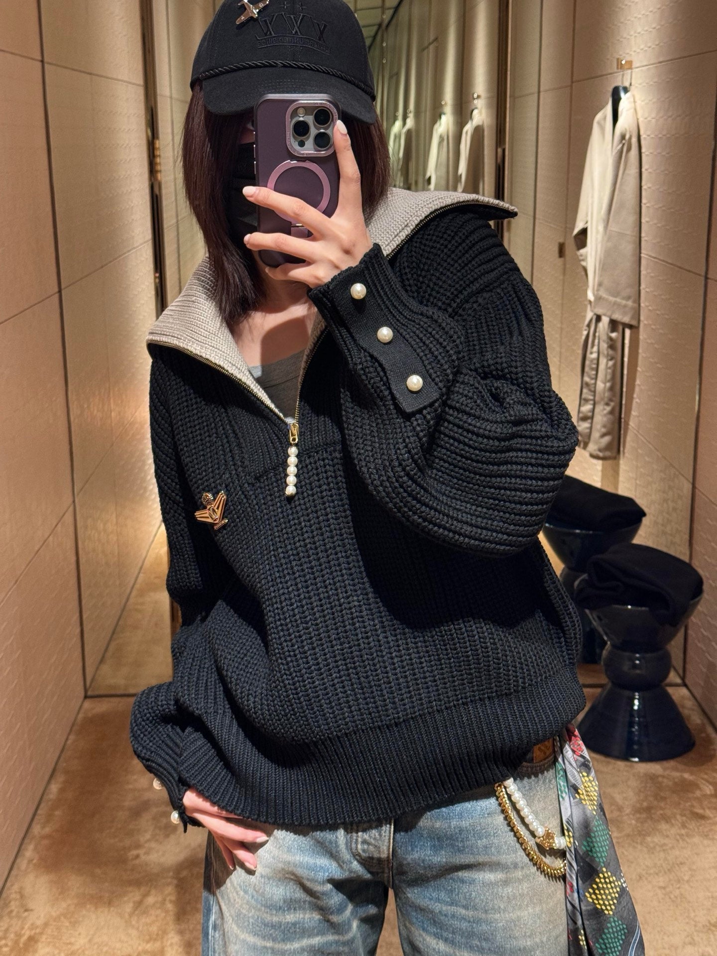 R공장 / 루이비통 남성 여성 반지퍼 니트
