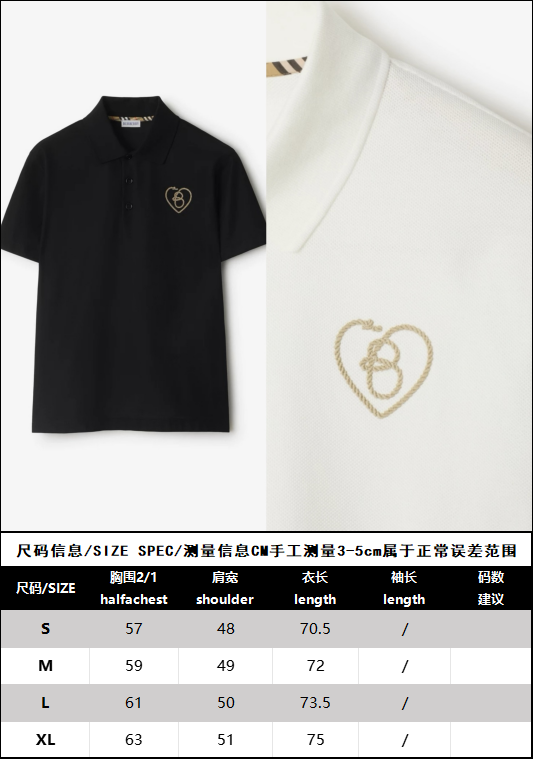 R공장 / 버버리 남성 하트 알파벳 B 패턴 면 폴로 반팔 셔츠