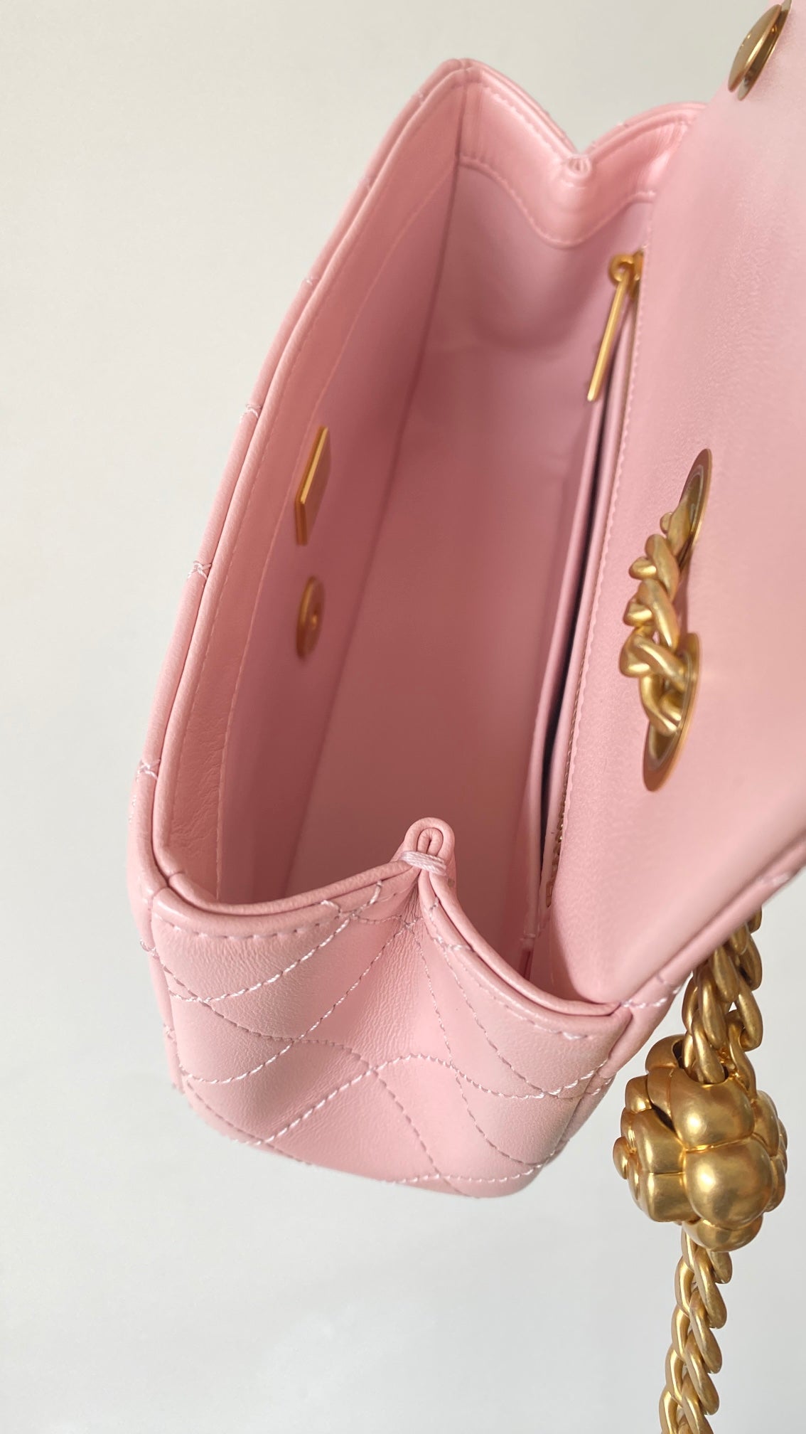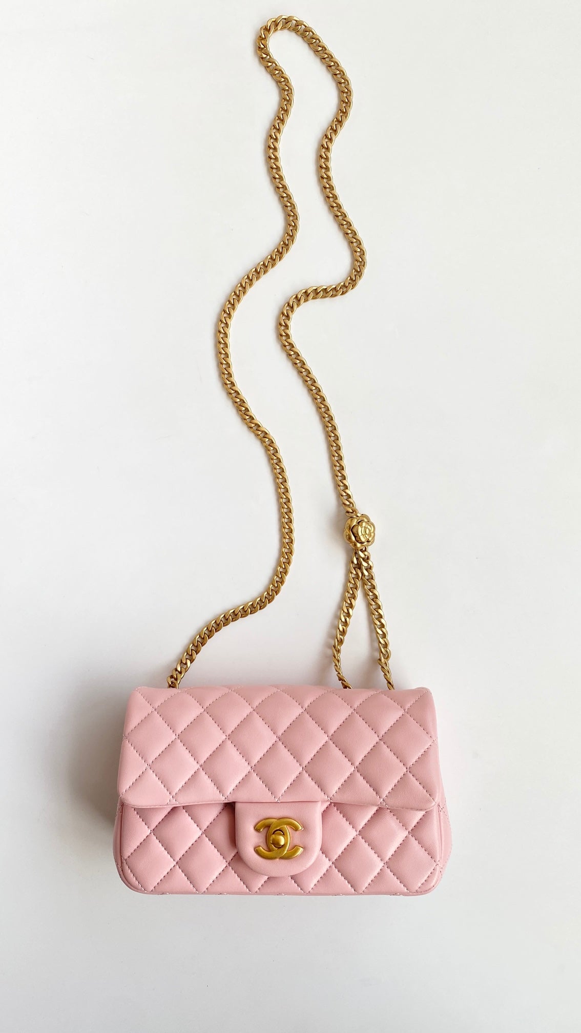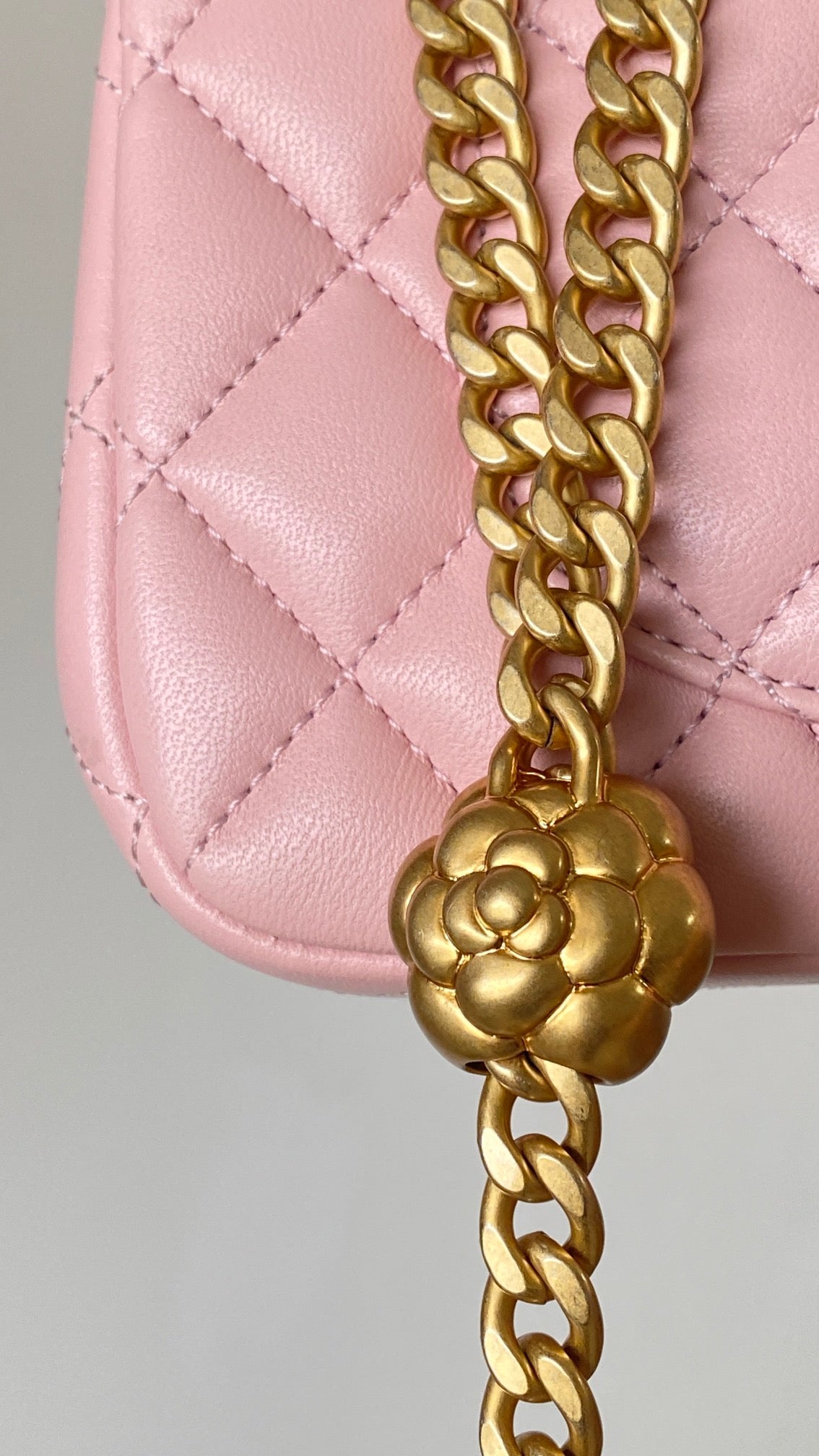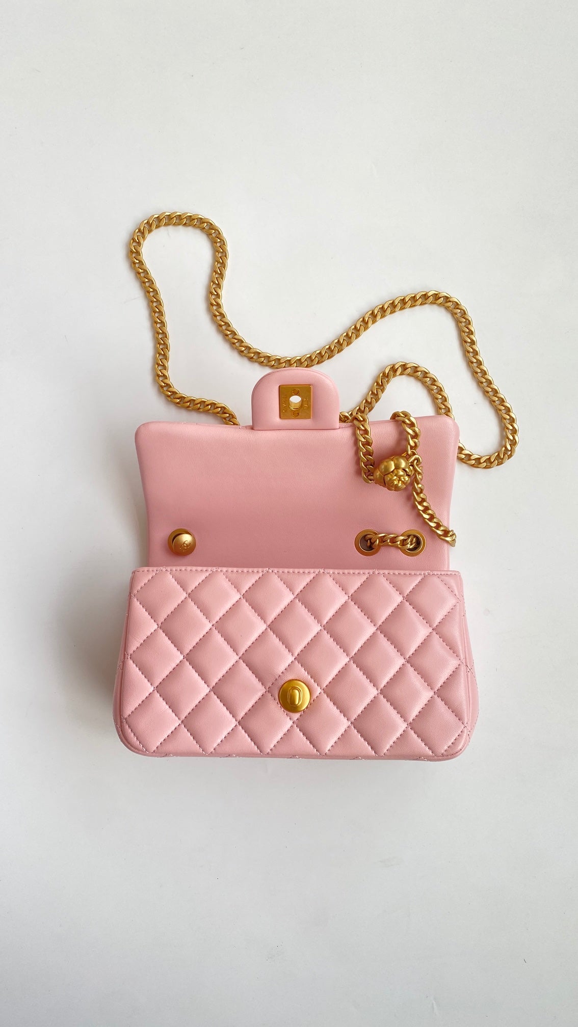 T무역/샤넬 미니 플랩백 골드 메탈 코랄 핑크