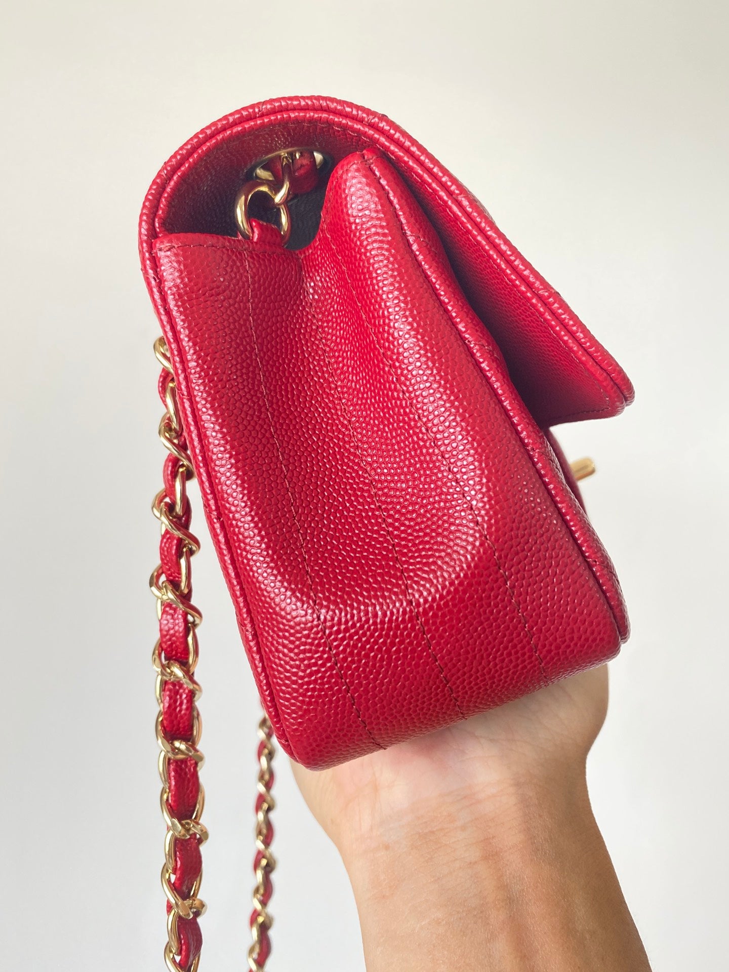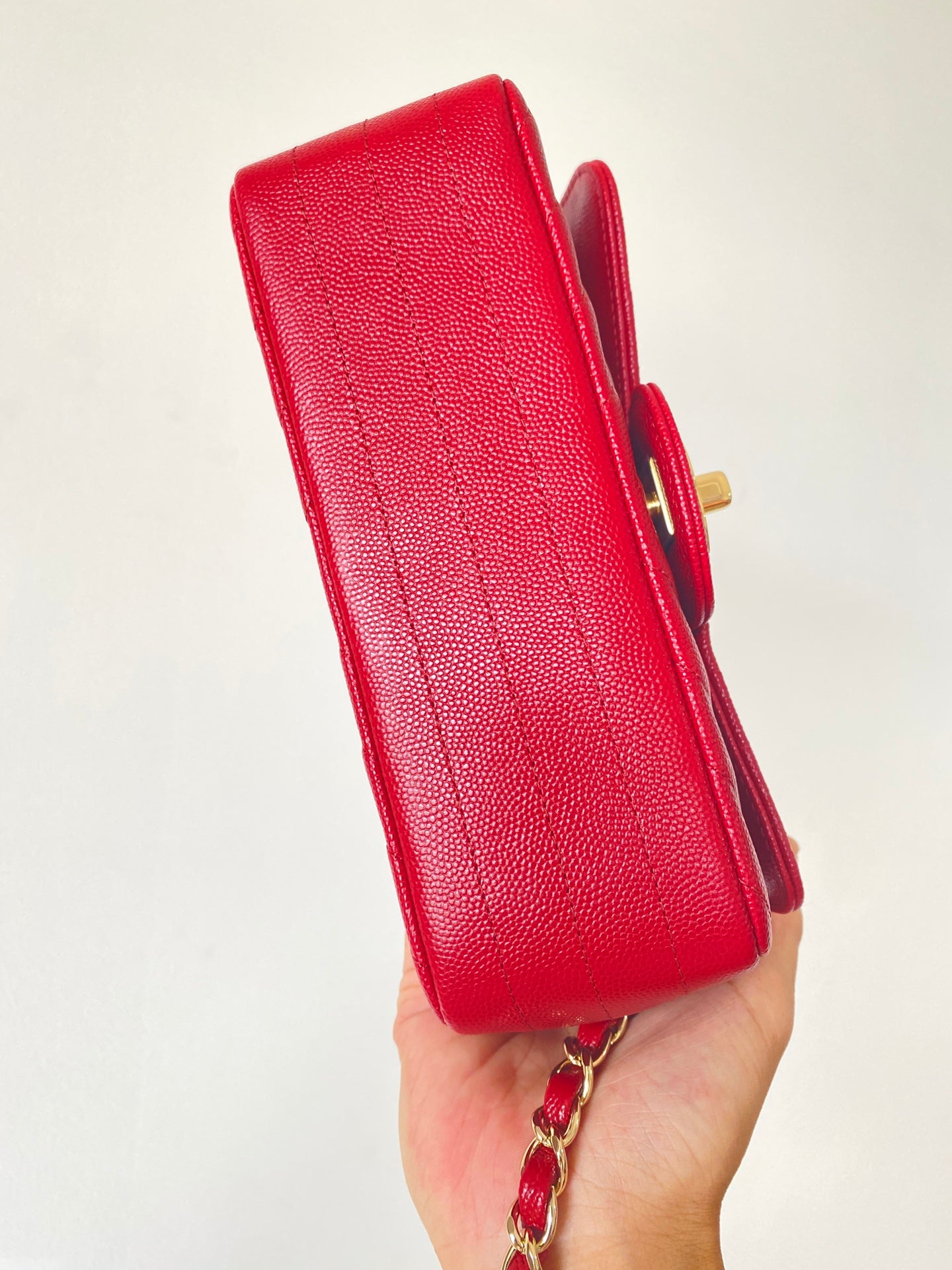 T무역/샤넬 클래식 금장 램스킨 뉴미니 사선퀼팅