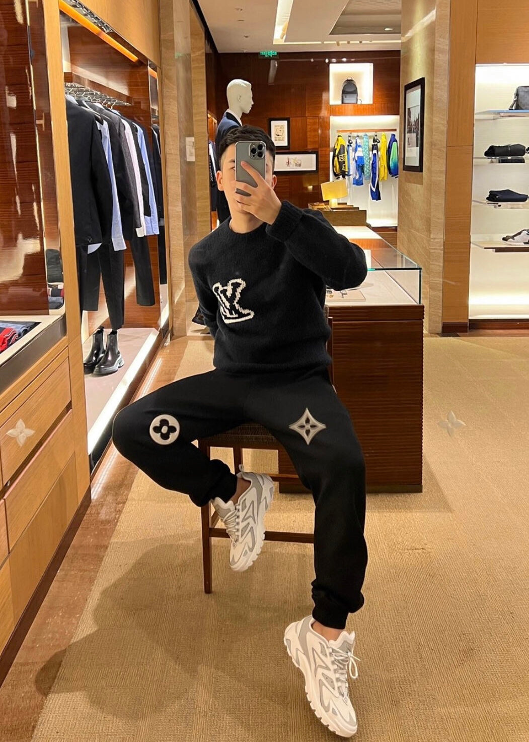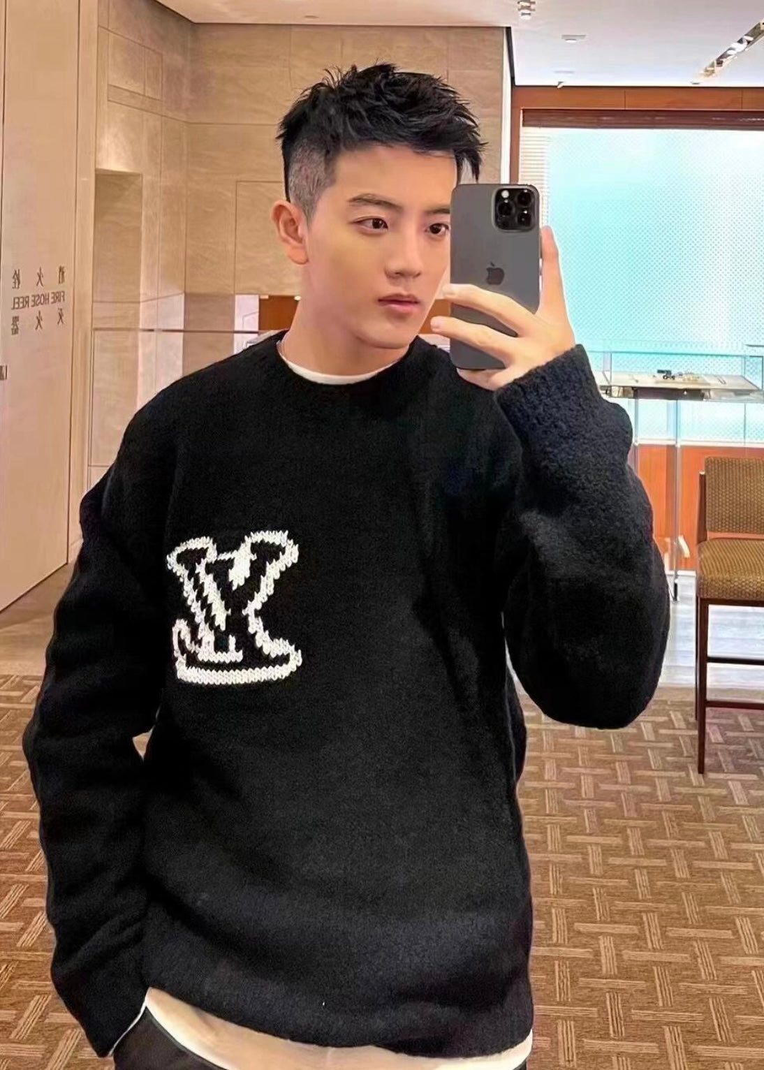 TJ셀러/루이비통 남성 스웨이드 울 혼방 라운드넥 셔츠