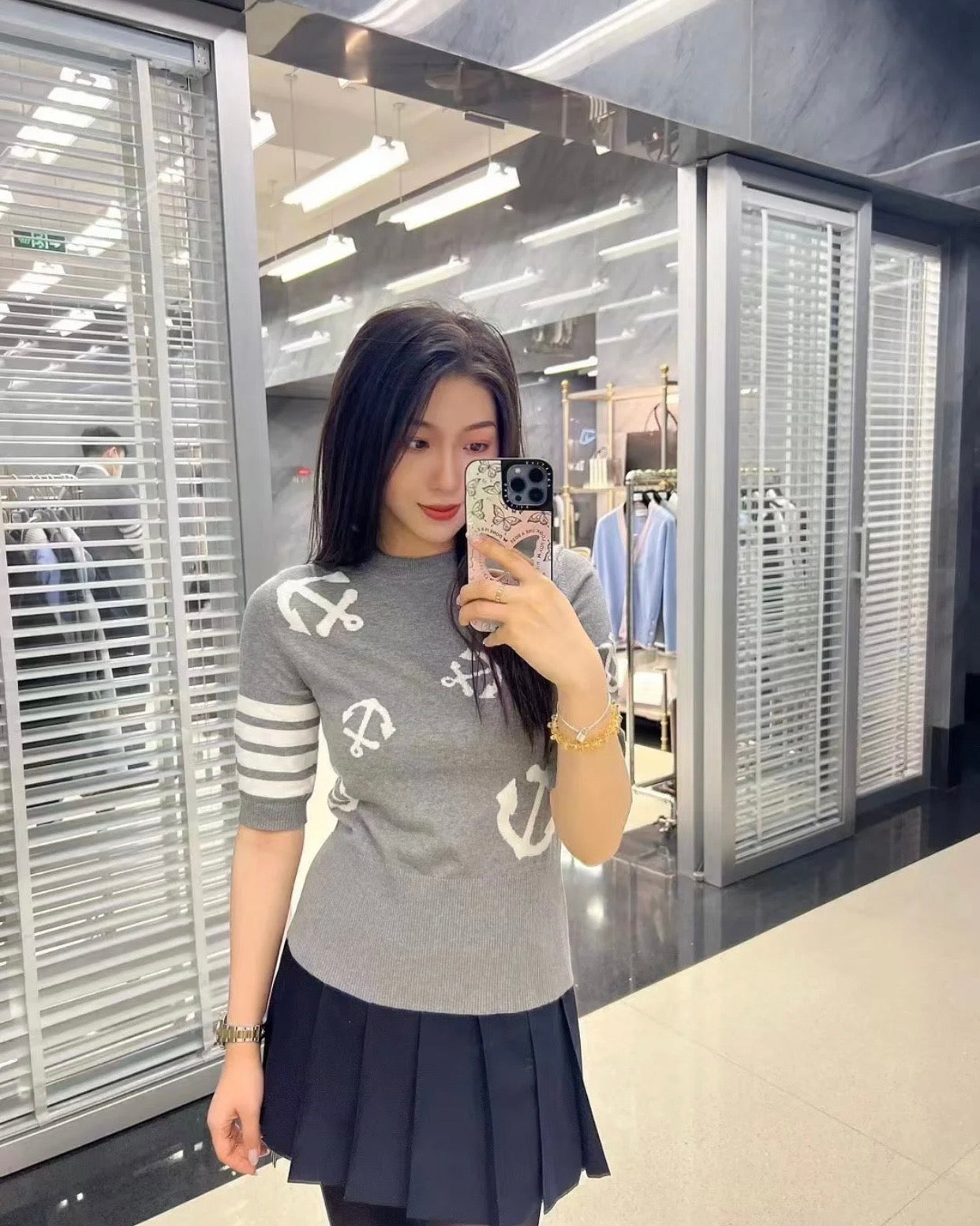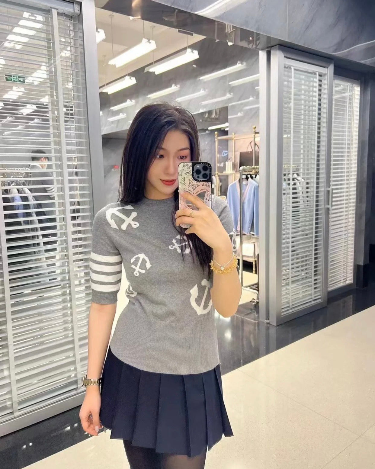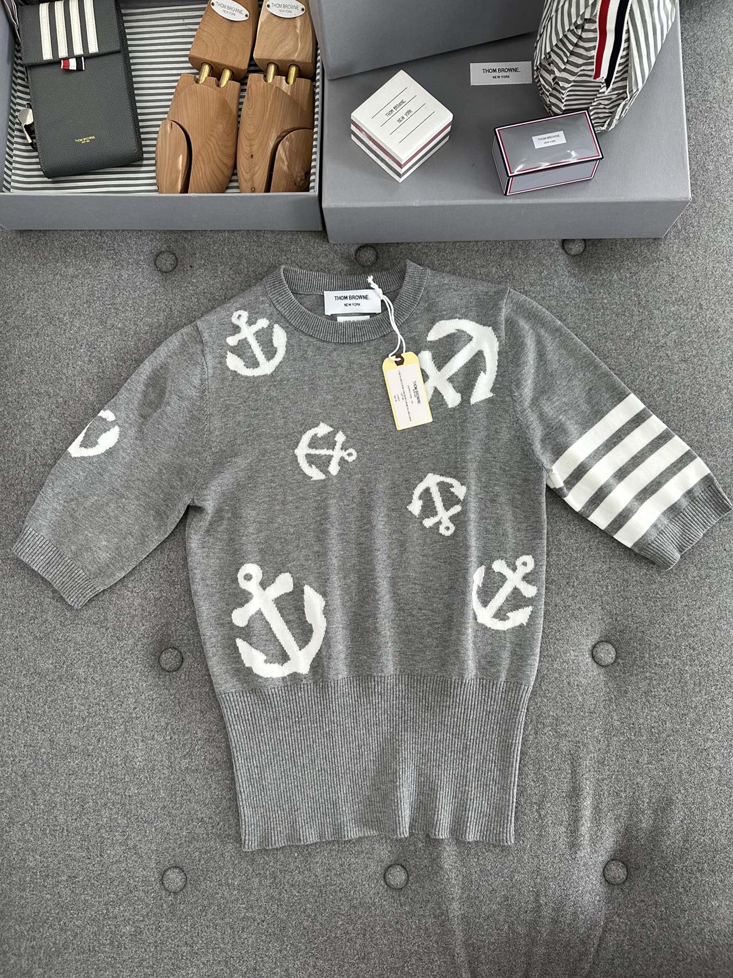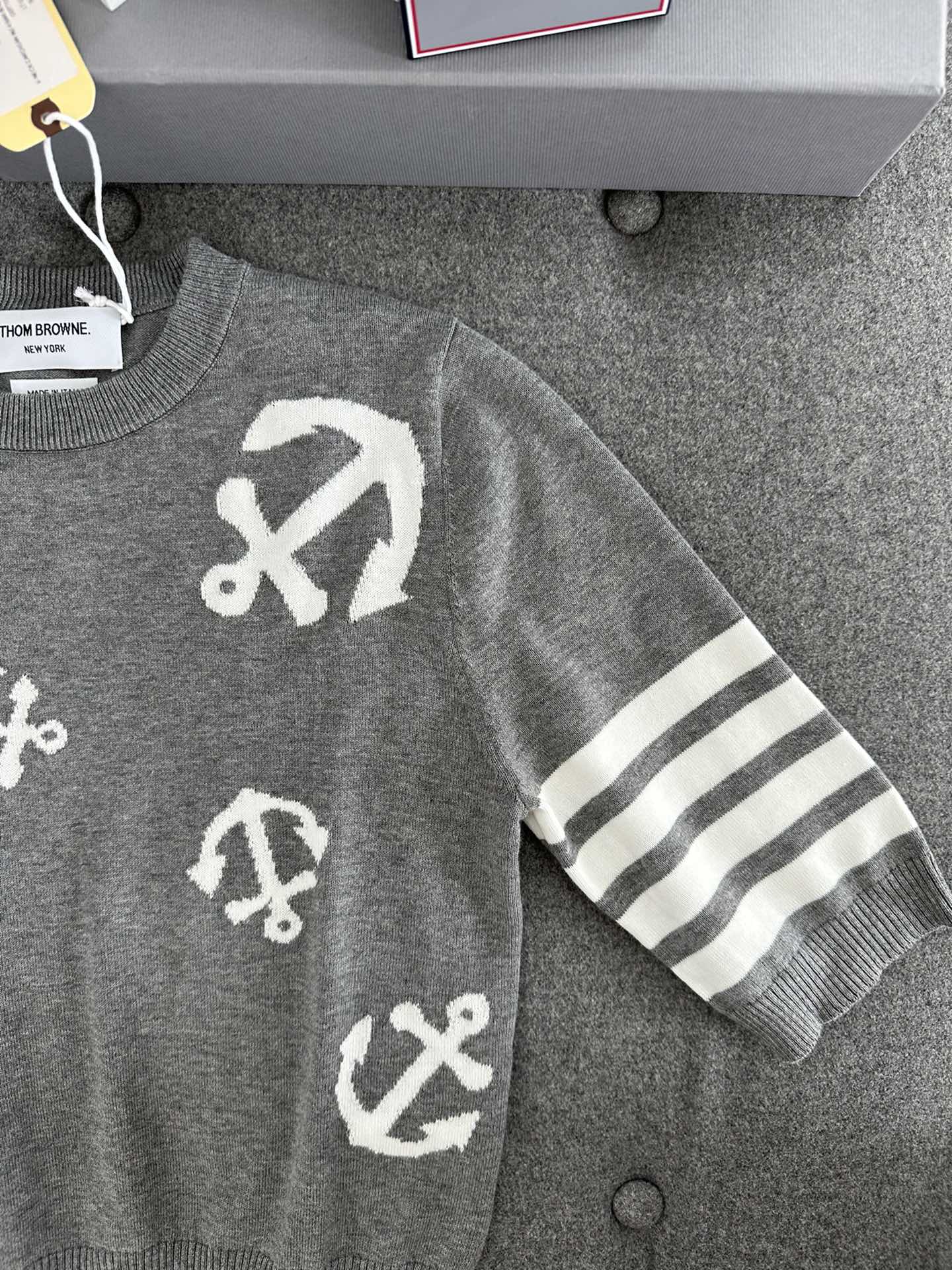 TJ셀러 / 여성 봄 여름 코튼 앵커 인타르시아 니트 반팔