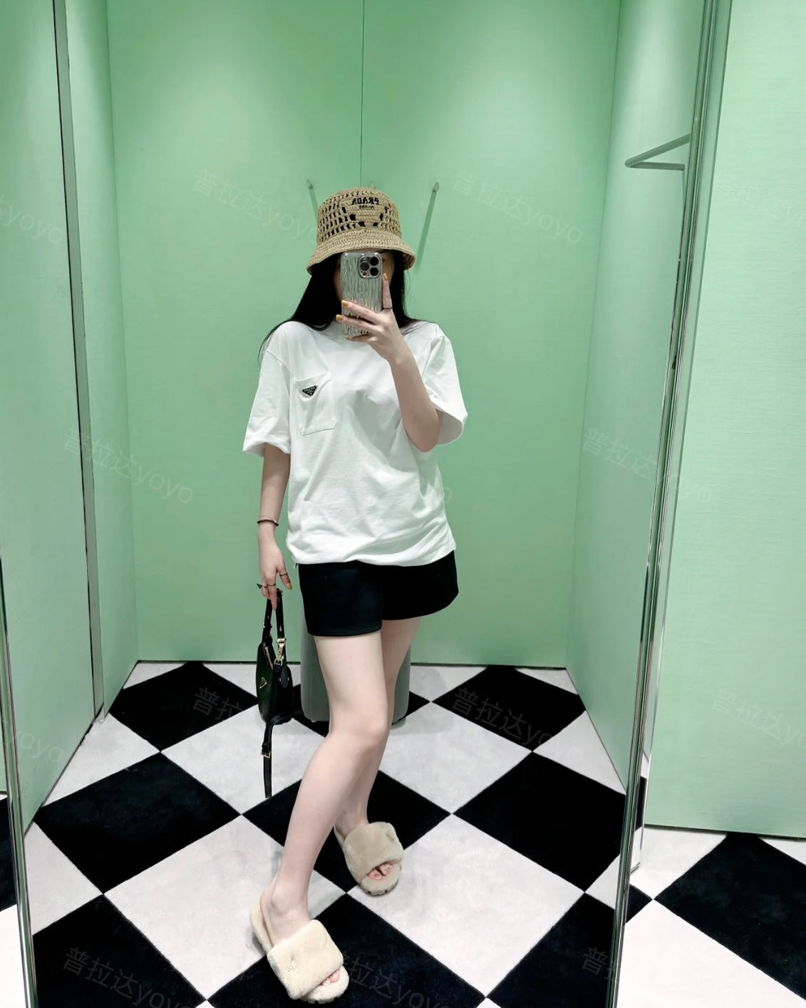 TJ셀러 / 프라다 반팔티 , 𝗣𝗥𝗔𝗗𝗔 로고 저지 포켓 티셔츠 반팔