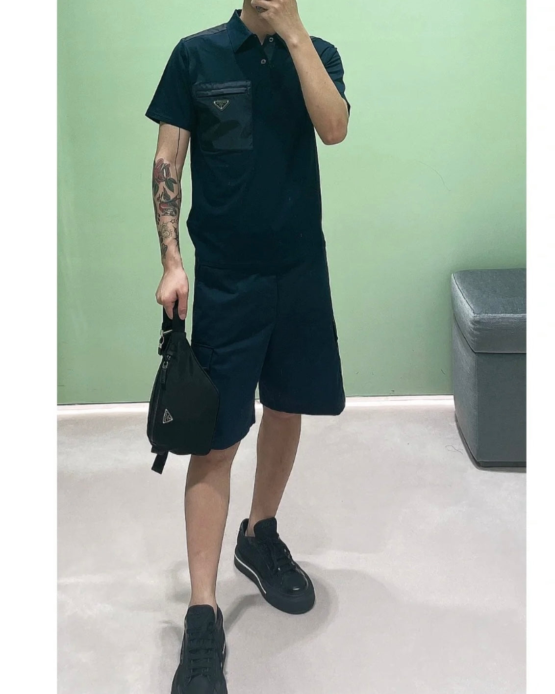TJ셀러 / 프라다 PK 카라티셔츠 , 나일론 & 스트레치 코튼