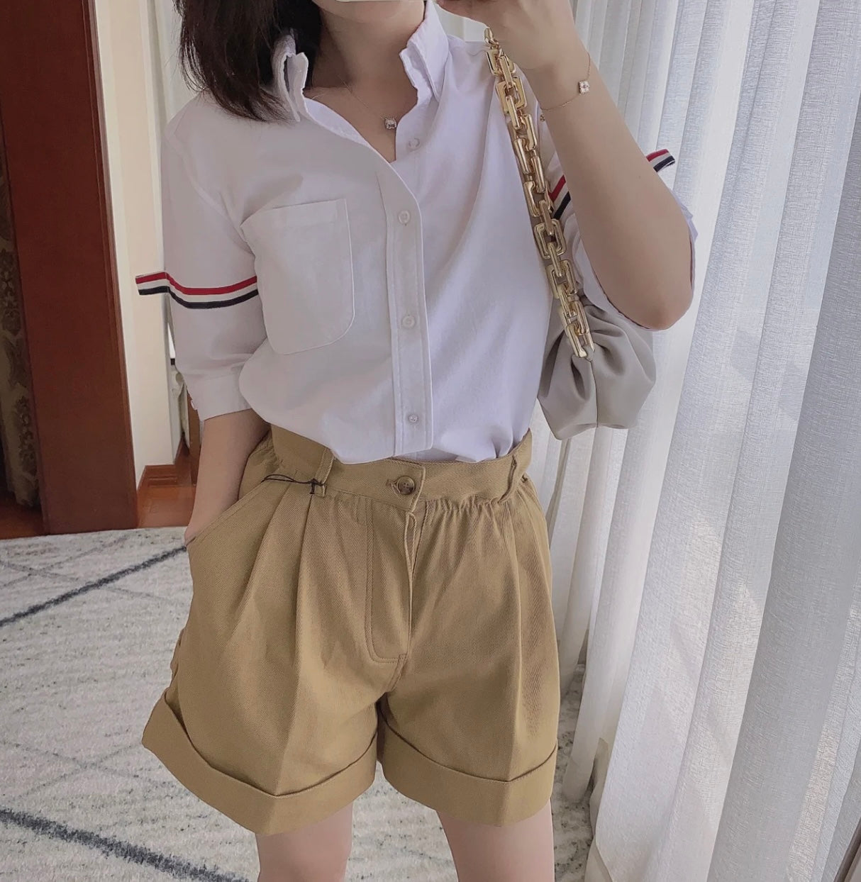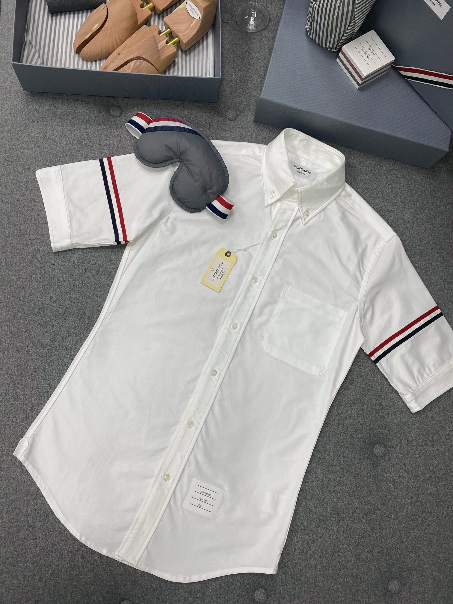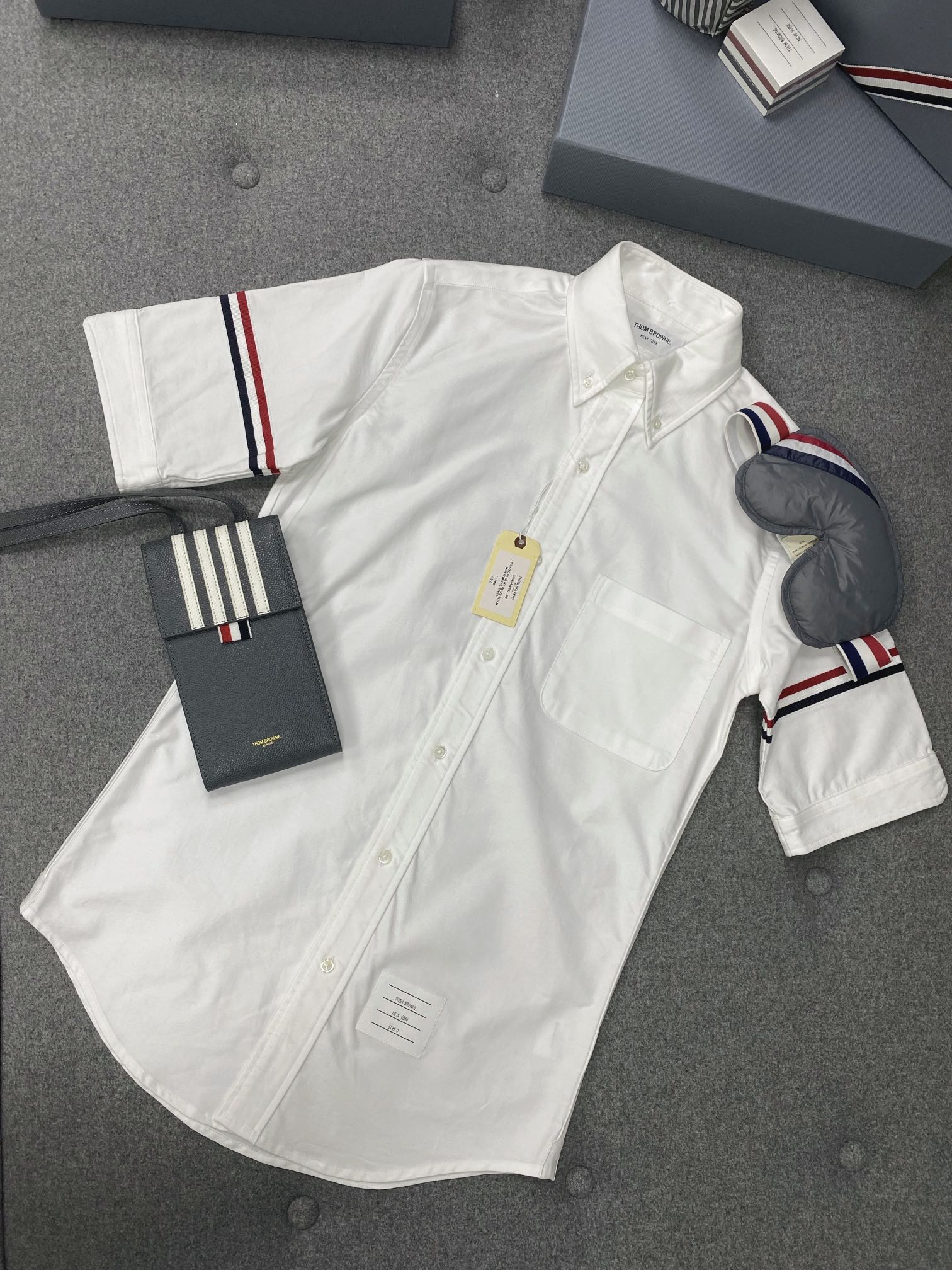 TJ / 톰브라운 여름 더블 슬리브 웹 하프 슬리브 셔츠