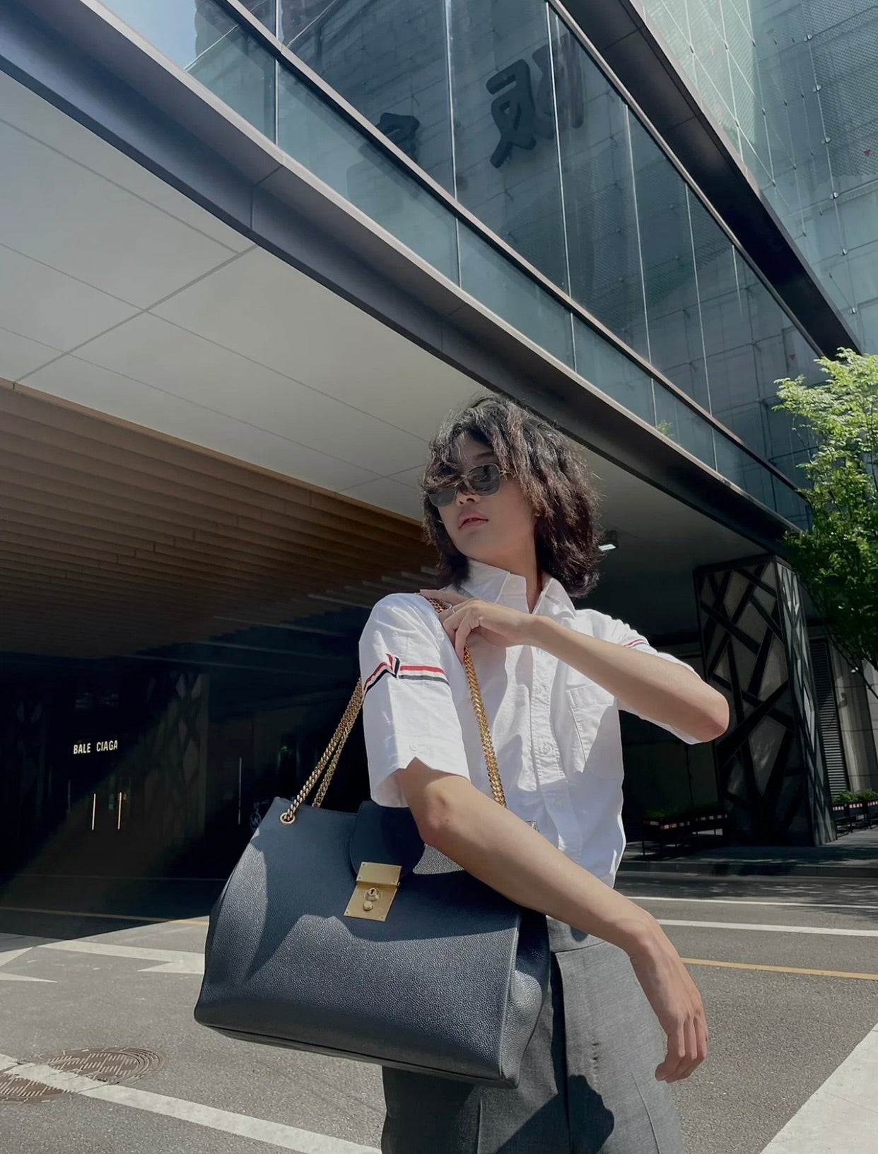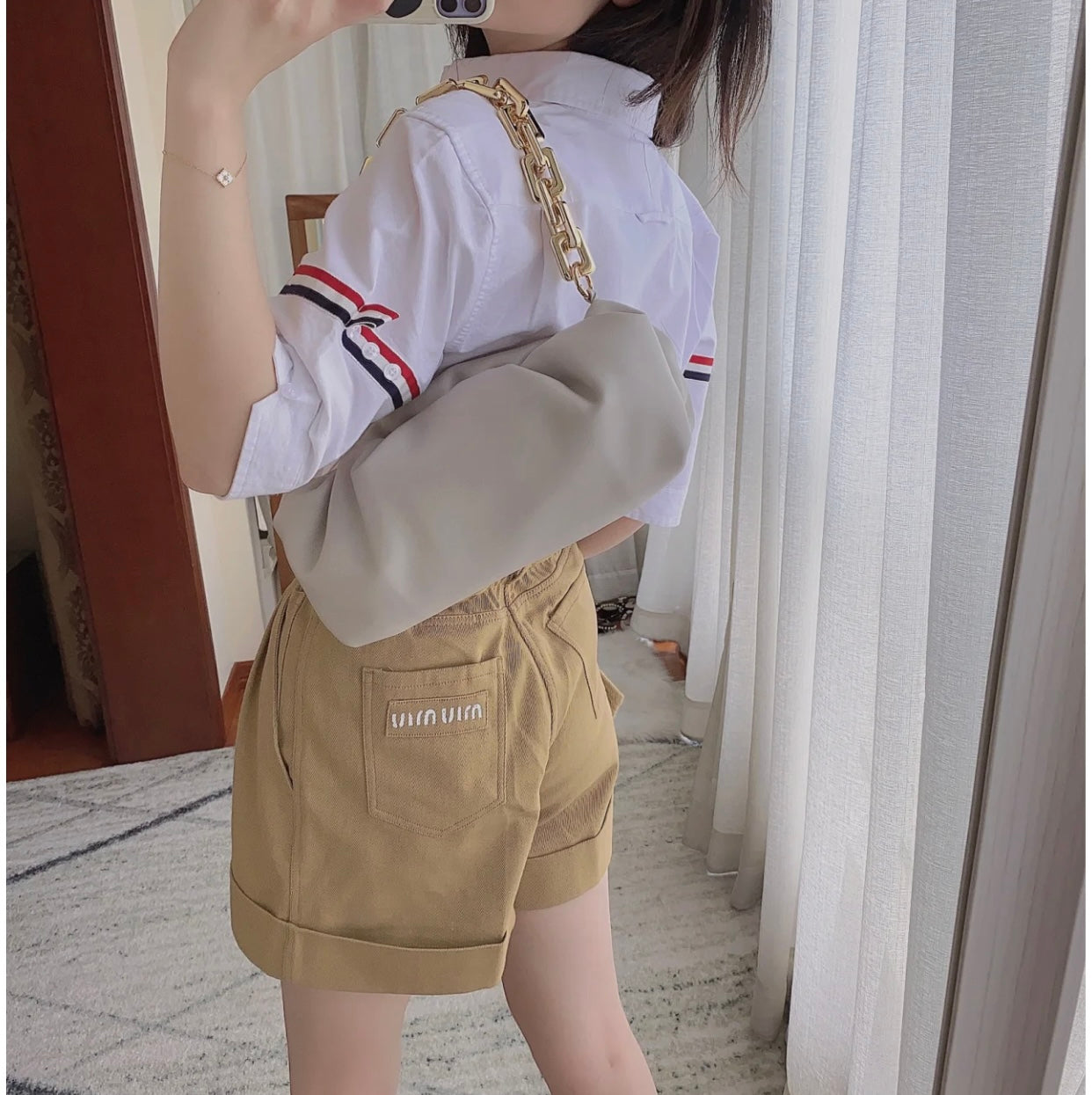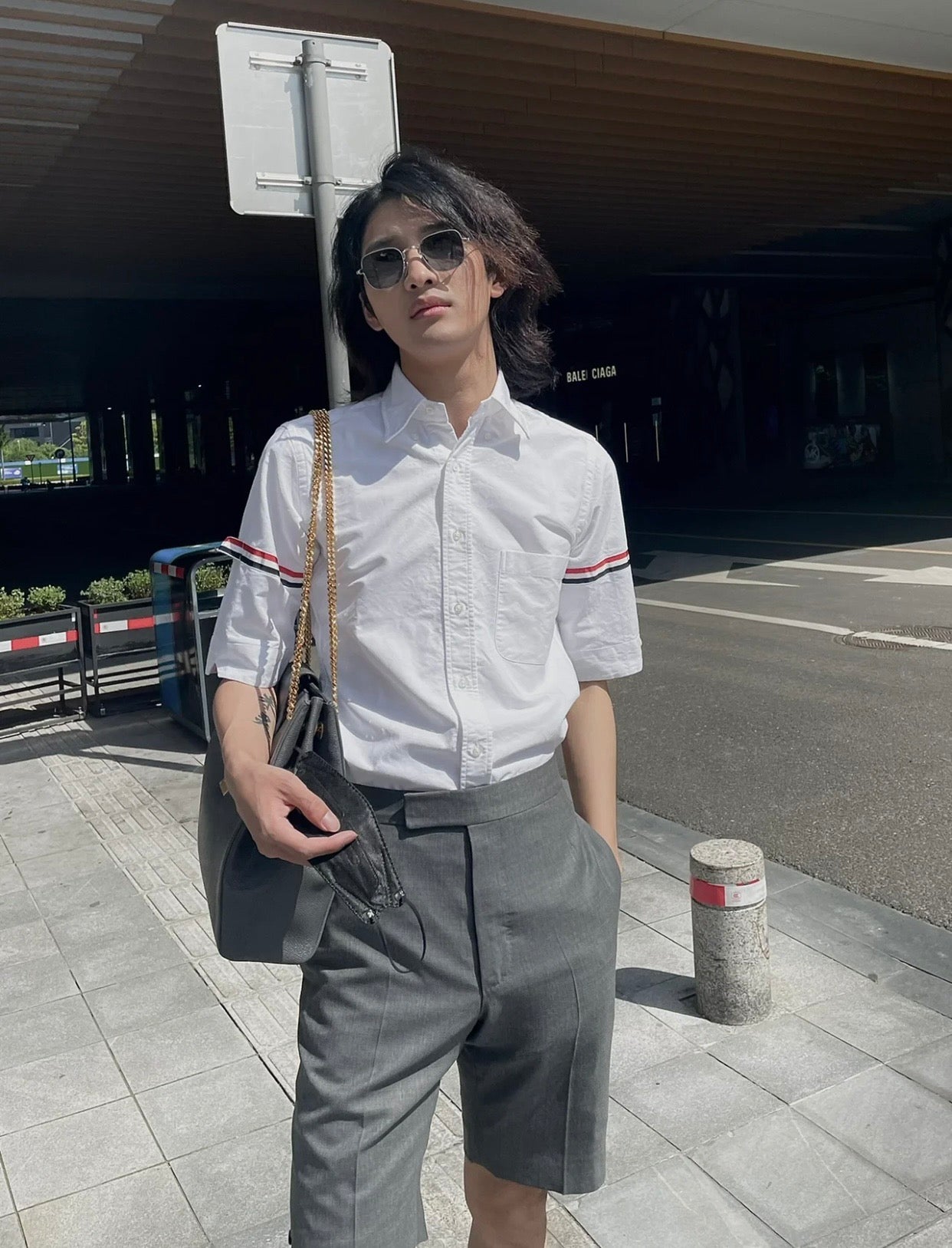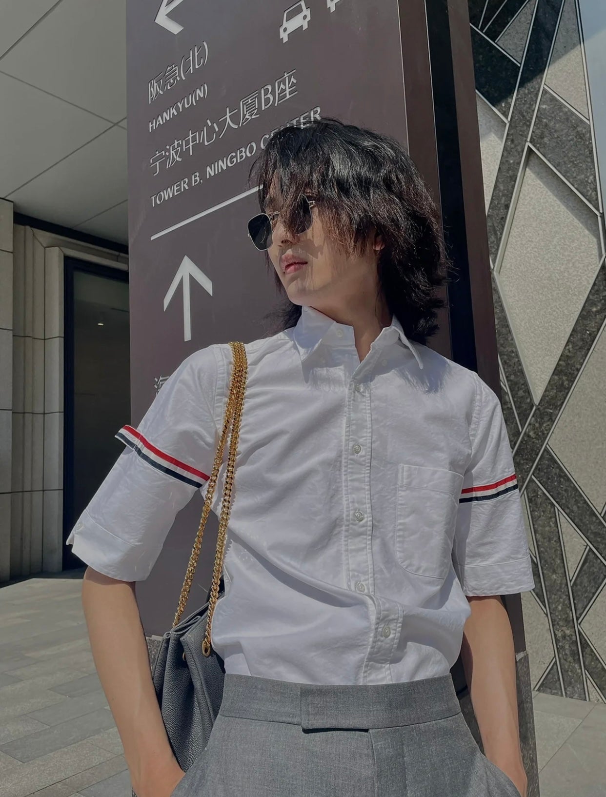TJ / 톰브라운 여름 더블 슬리브 웹 하프 슬리브 셔츠