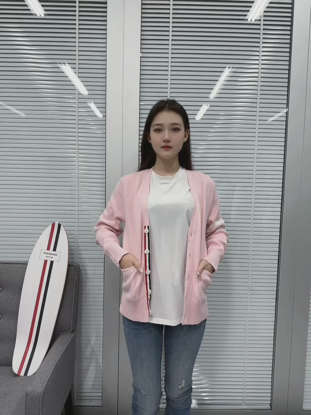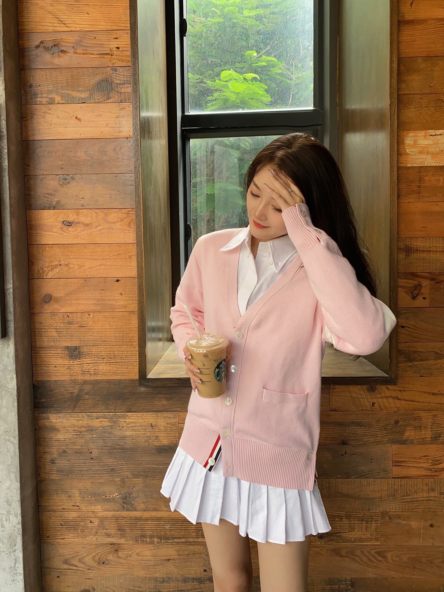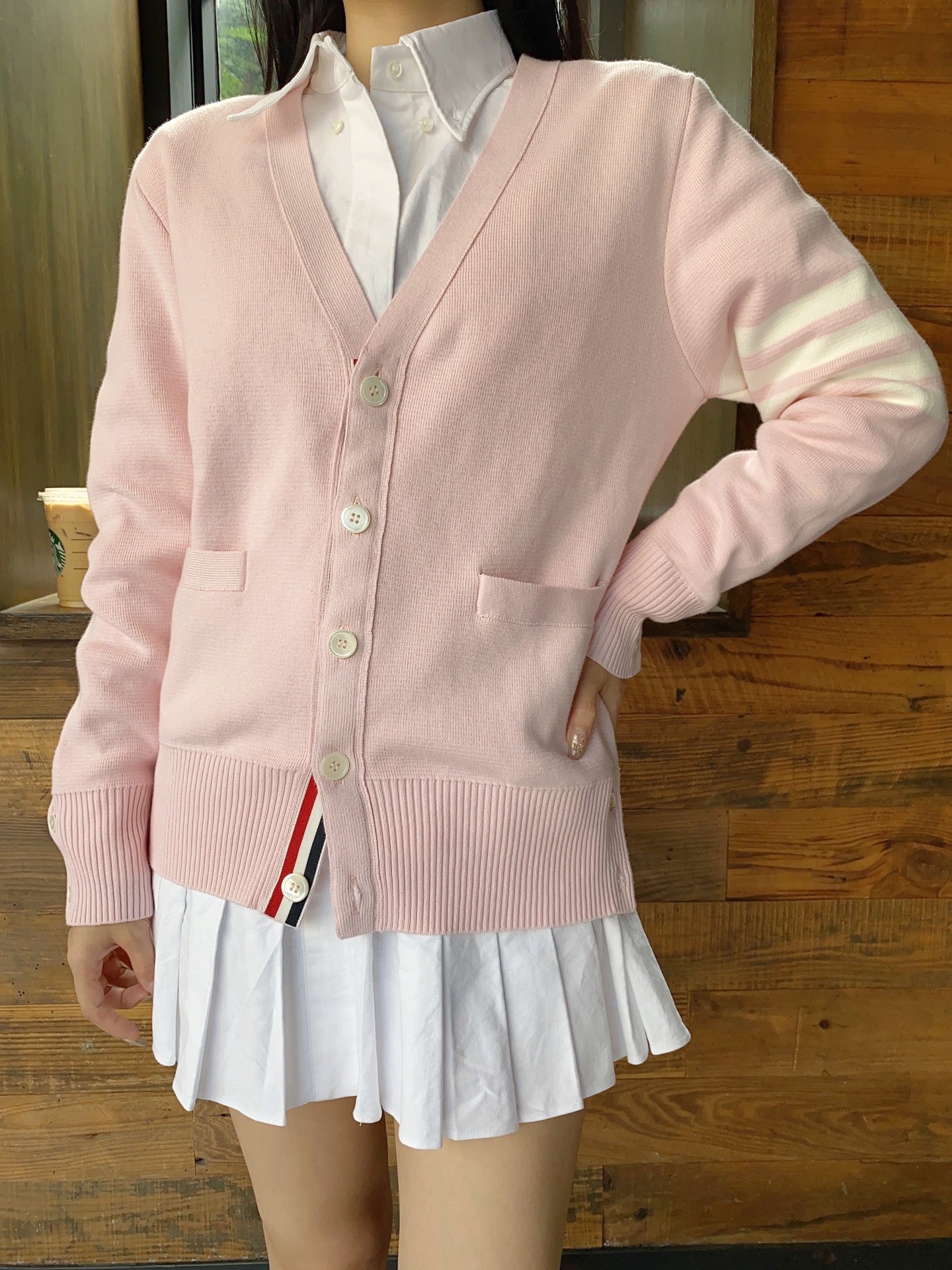 TJ / 톰브라운 여성 코튼 핑크 가디건