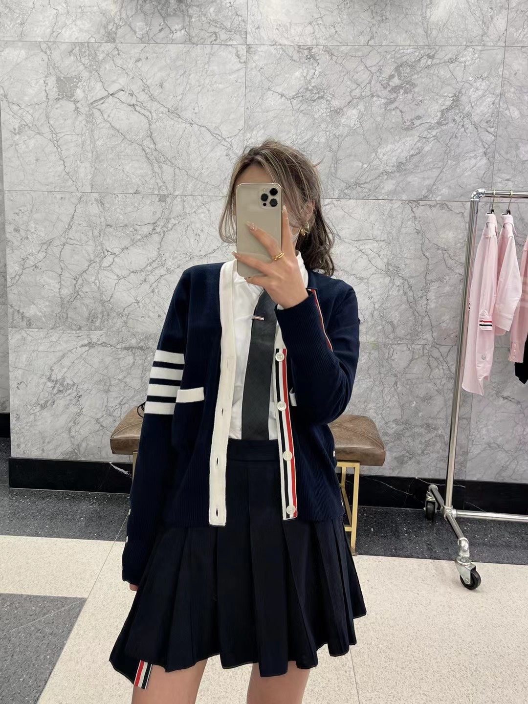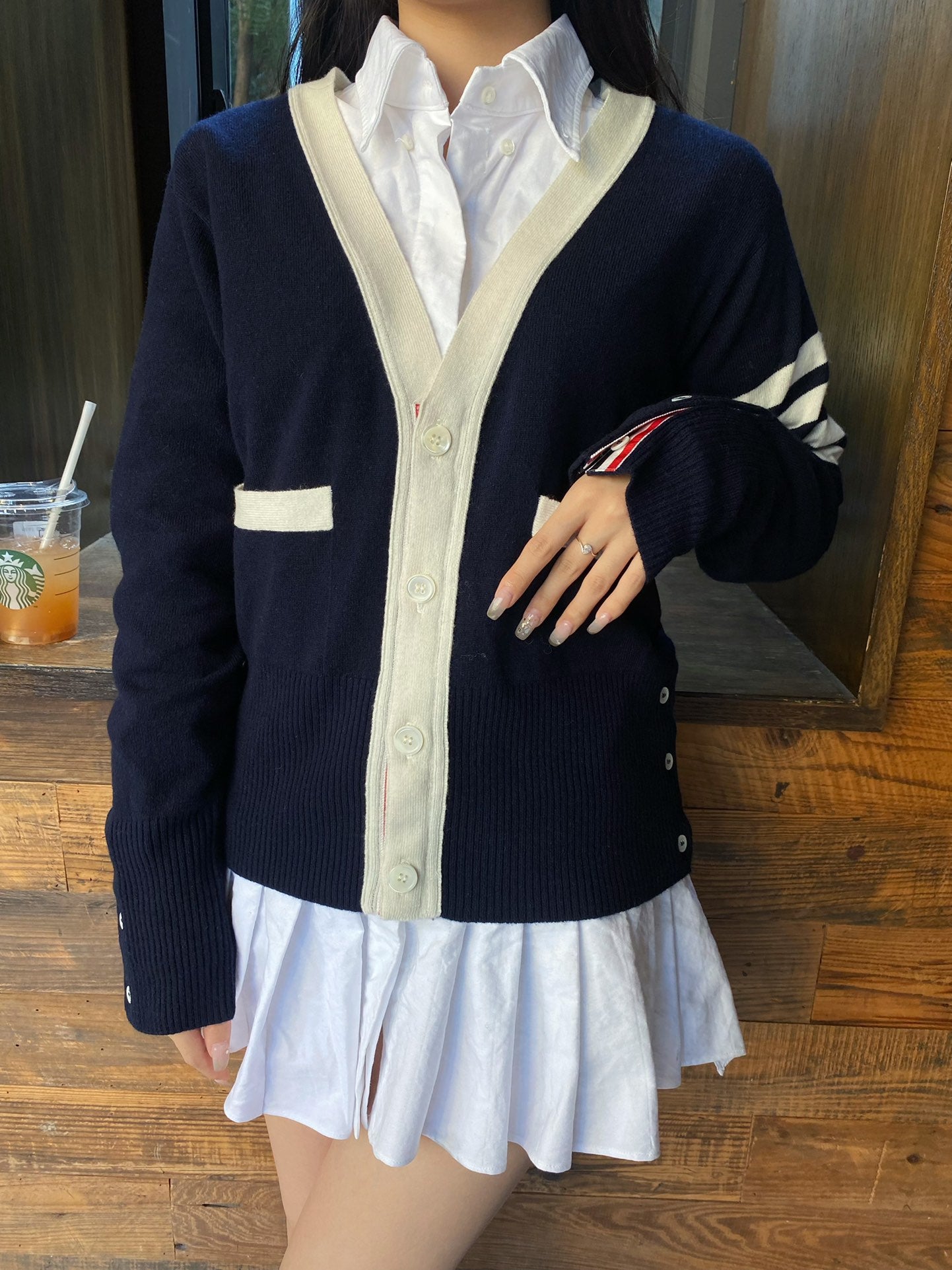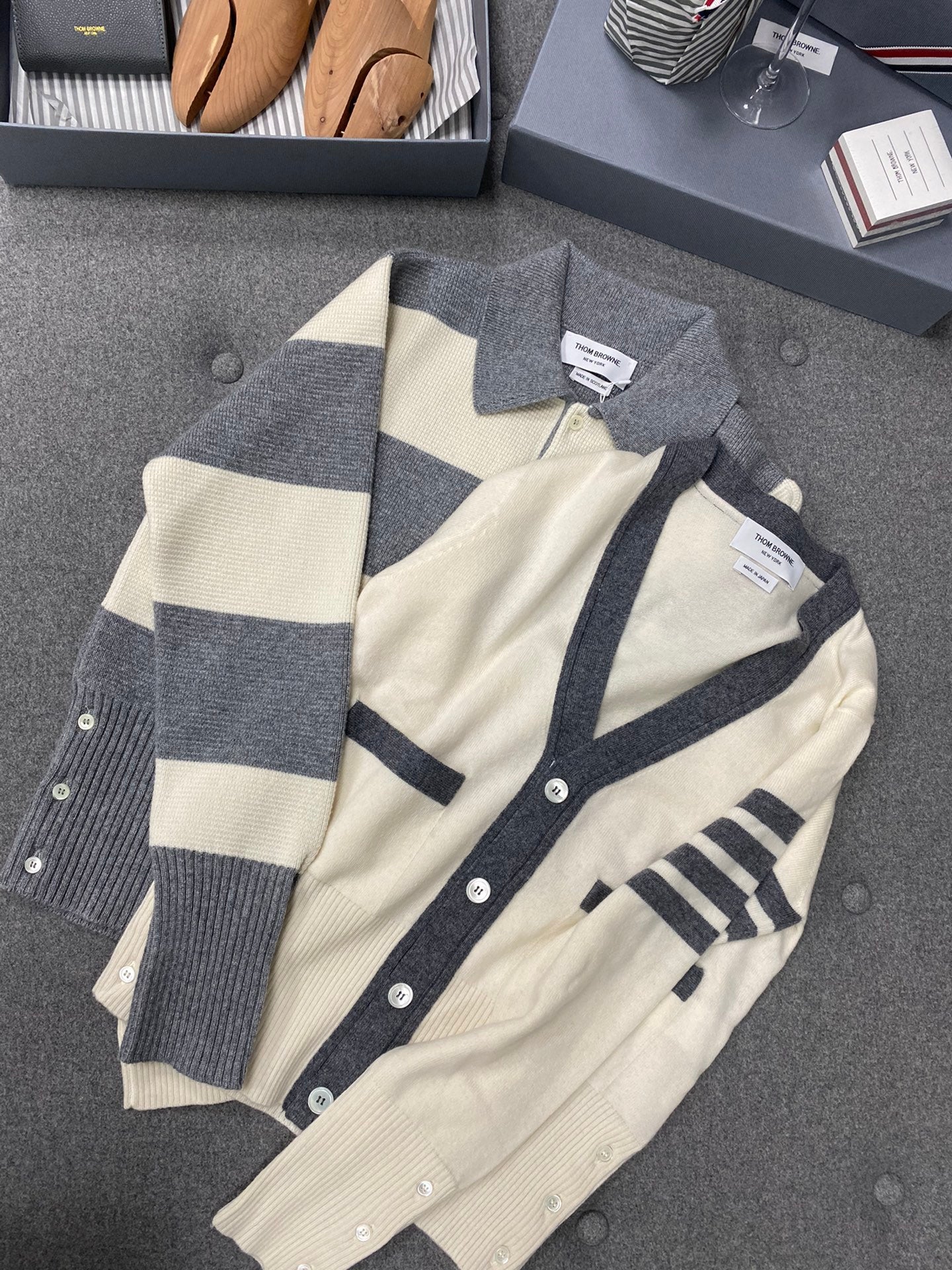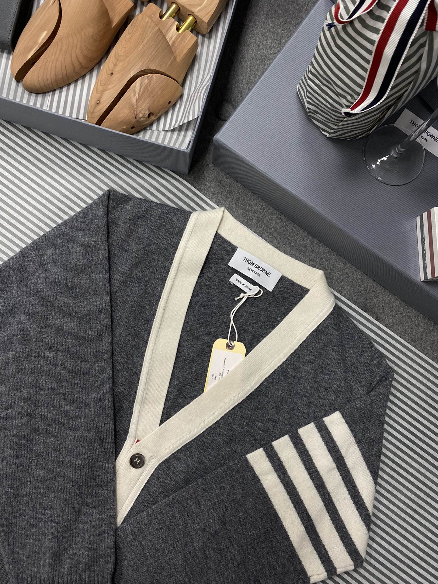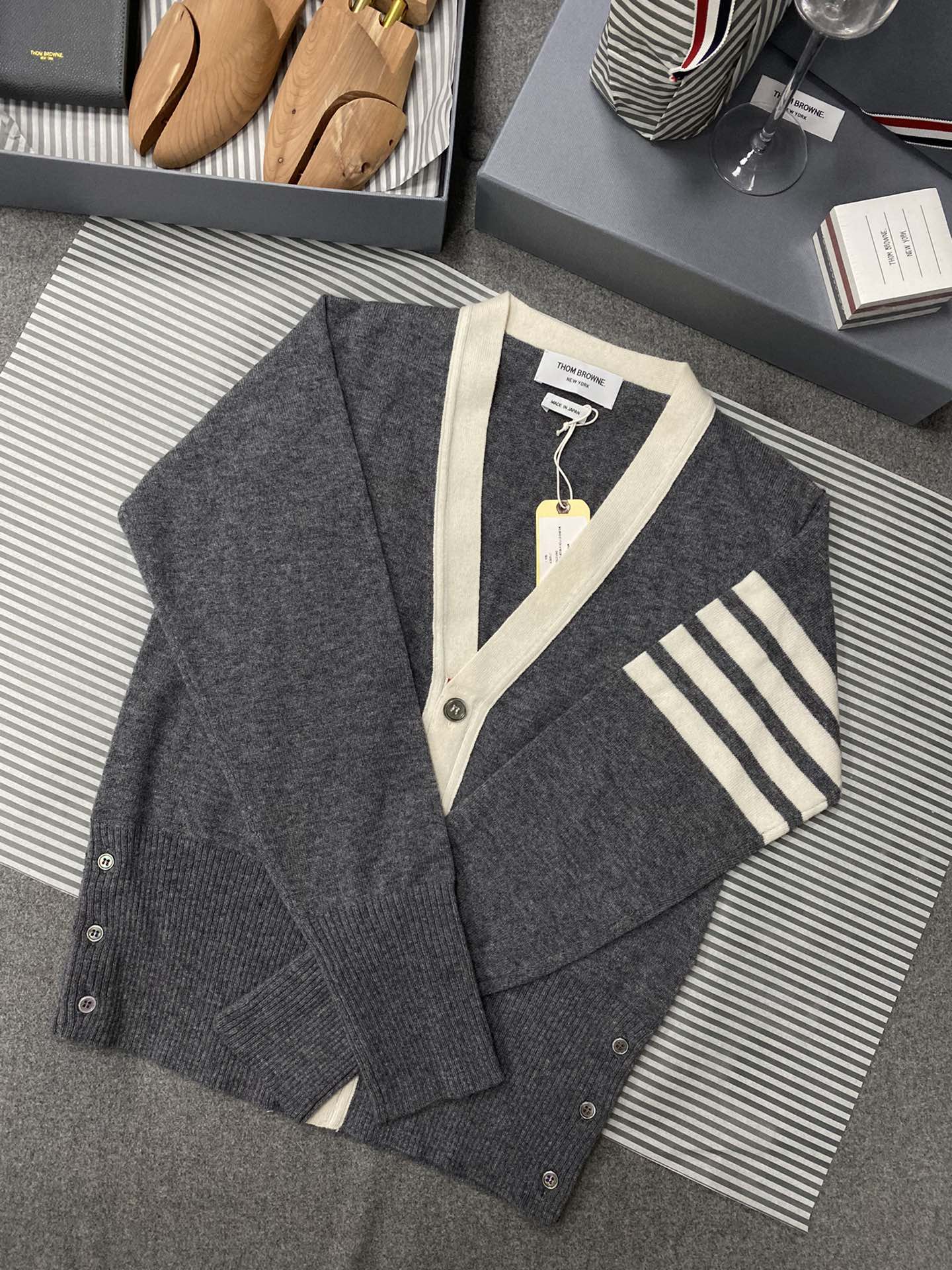 TJ / 톰브라운 캐시미어 4버튼 컬러블로킹 가디건 3가지색