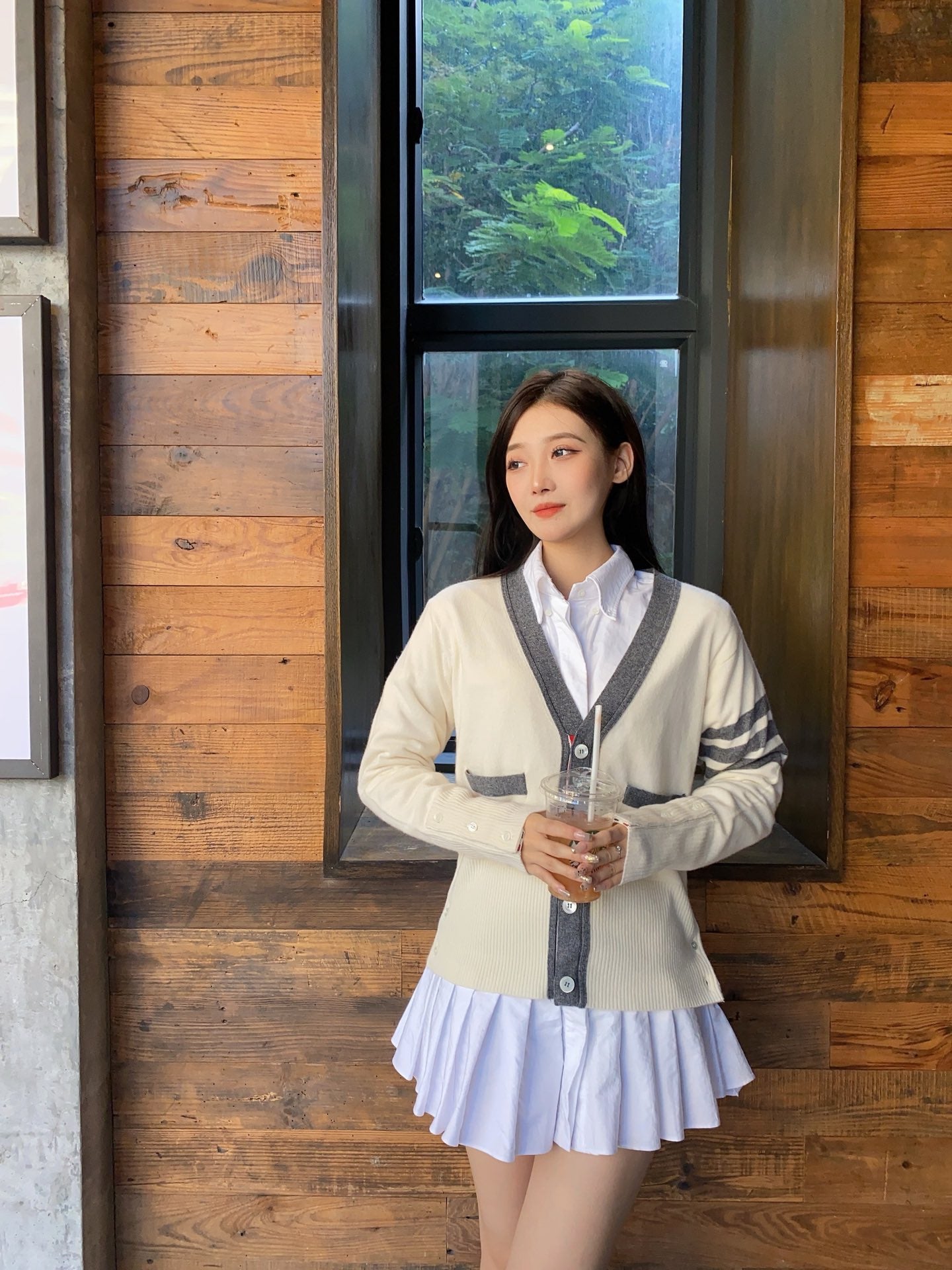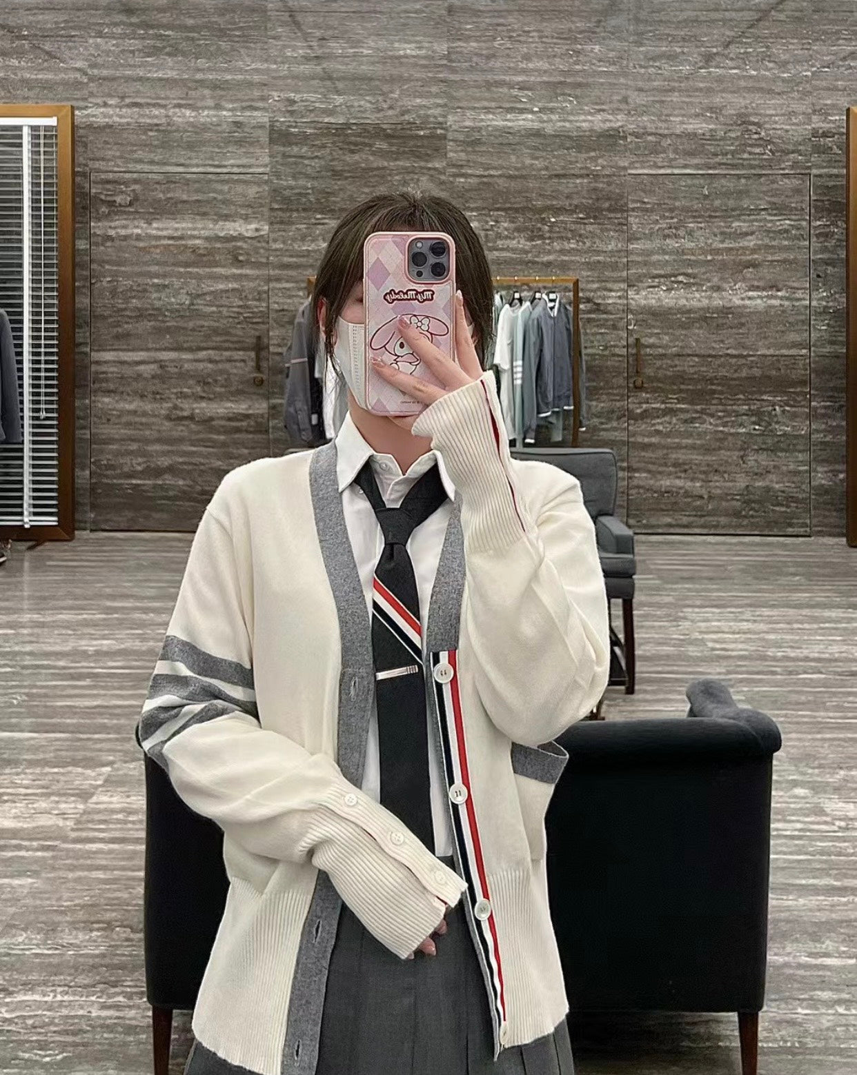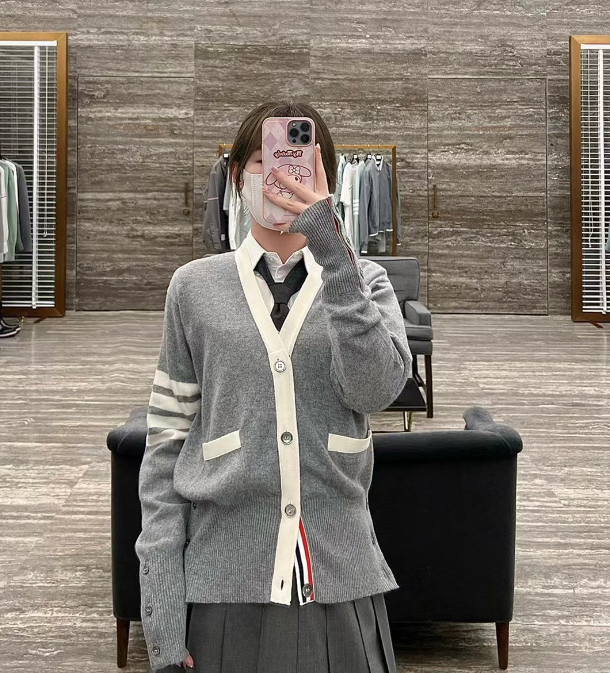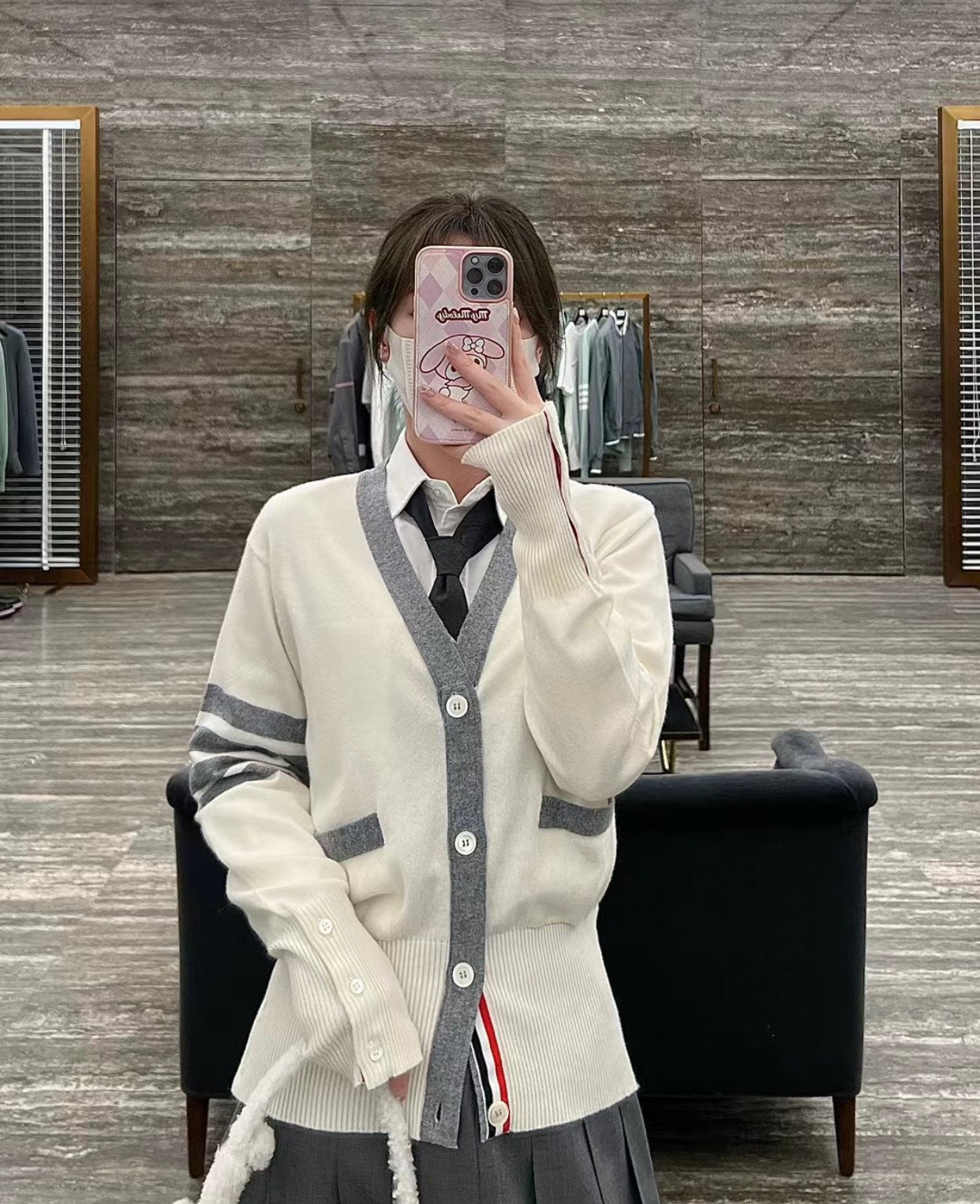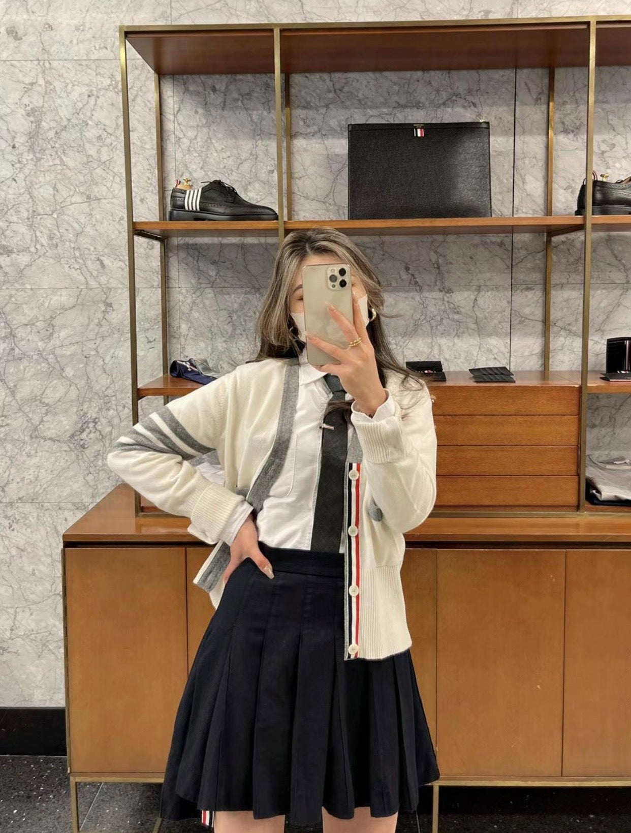 TJ / 톰브라운 캐시미어 4버튼 컬러블로킹 가디건 3가지색