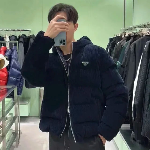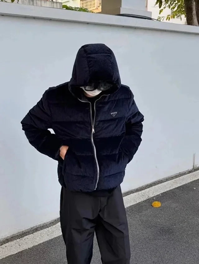 zok/프라다 남성 남색 코듀로이 패딩
