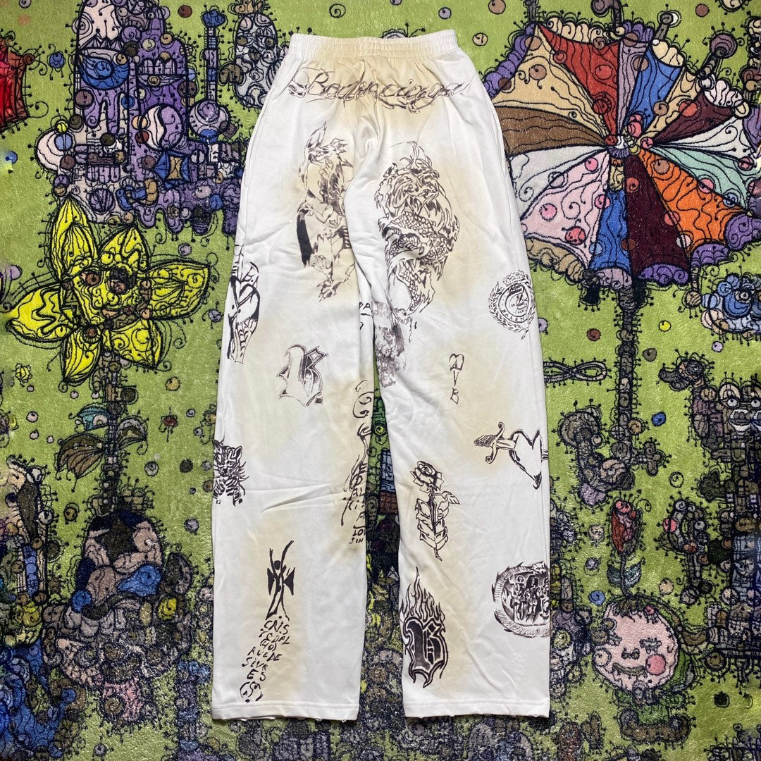 zzll /발렌시아가 남성 낙서 롱 팬츠